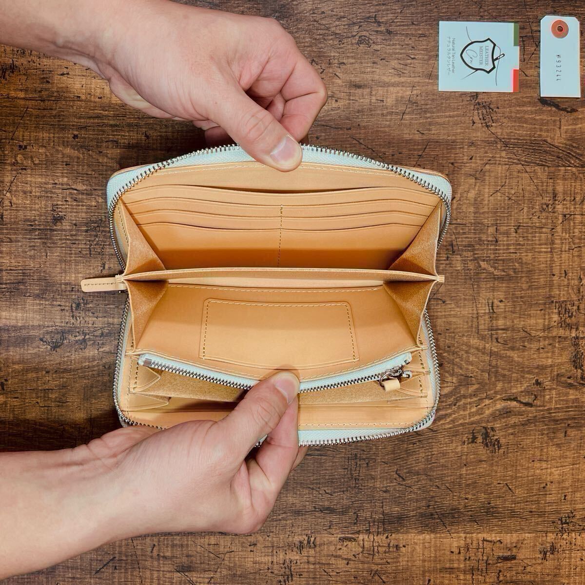 「サドルレザー」シリーズで使用しているヌメ革は、塗料の加工を一切しておりません。その他の表面加工も、ほとんど施していないのが特徴で、新品の状態は「白ヌメ」と呼ばれる、淡いベージュ色です。無染色なので、革本来の色が楽しめます。 使えば使うほど色が濃くなり、最終的には飴色に変化。 新品時と使い込んだ革で、全く違う見た目になります。