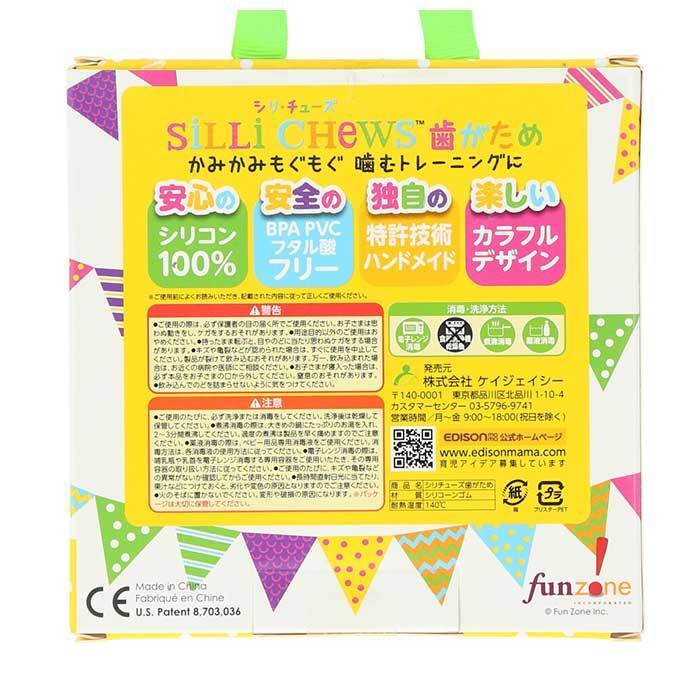 | 商品説明 | ・赤ちゃんの、かみかみもぐもぐトレーニングにピッタリ♪「SilliChews 歯がため」が発売。 ・パパ・ママも安心の食用品シリコン素材100%使用!さらにBPA、PVC、フタル酸フリーだから安全◎ ・独自の形状で唇や歯茎に刺激を与え物を噛む感覚を学ぶことで、離乳時期の「吸う」から「噛む」への移行をサポート♪ ・電子レンジ消毒、薬液・煮沸消毒OKなので、いつでも清潔を保てる。 ・お手持ちのストラップを装着できる穴付き。バッグやベビーカーに取り付けることができ、持ち運びもラクラク。 ・赤ちゃんがかみかみする姿を思わず写真に収めたくなっちゃうような、カラフルで可愛らしいデザインが魅力♪プレゼントにもおすすめ。 |