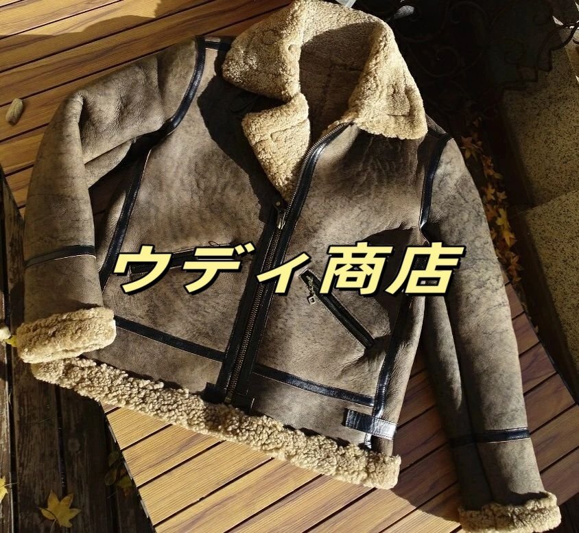 採寸は下記通りです。 S: 着丈60cm バスト104cm 肩幅44cm 袖61cm M: 着丈61.5cm バスト109cm 肩幅45cm 袖62cm L: 着丈63cm バスト114cm 肩幅46cm 袖63cm XL: 着丈64.5cm バスト119cm 肩幅47cm 袖64cm ■素材 羊革毛皮一体 ■生地備考 【透け感】なし 【生地の厚さ】普通