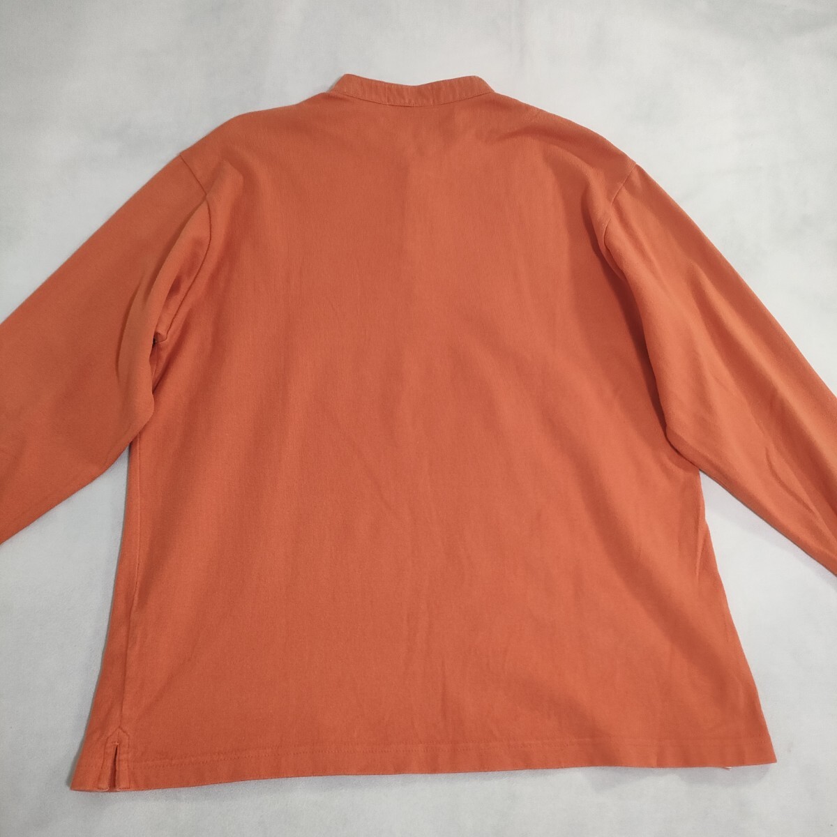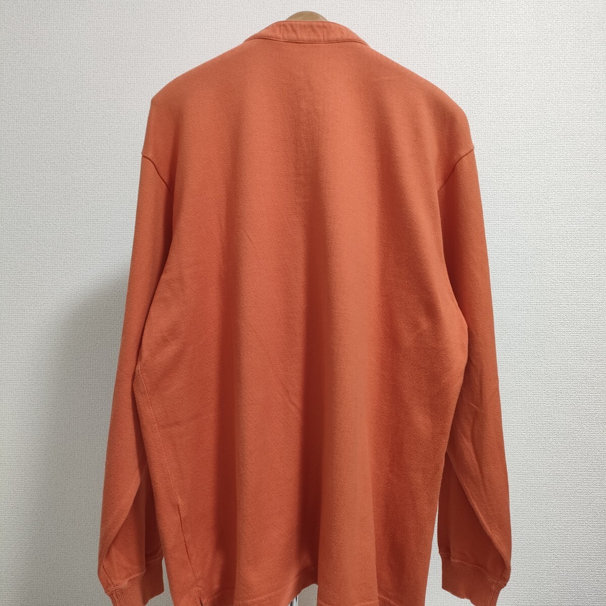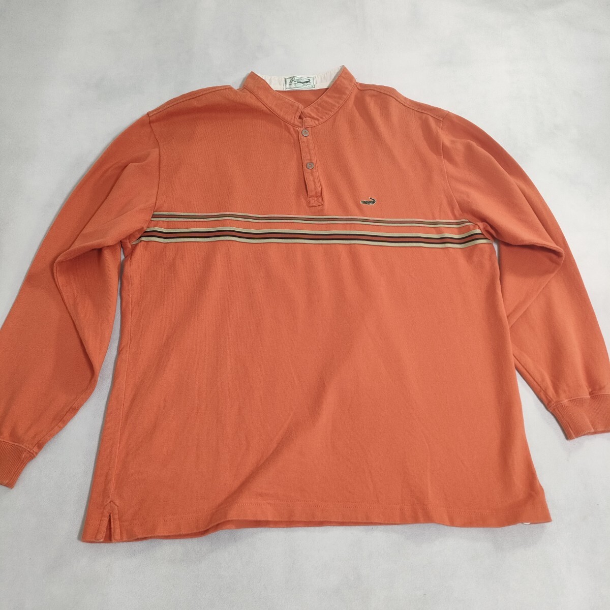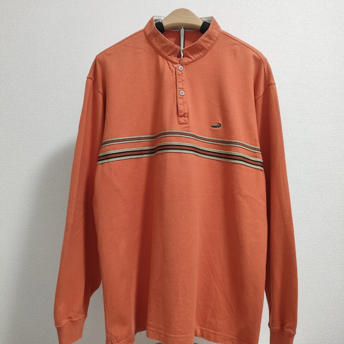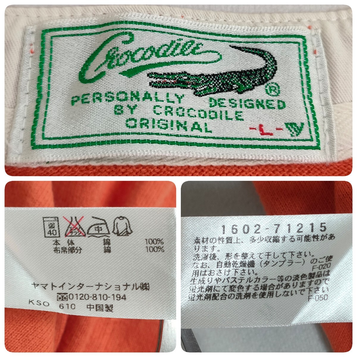 CROCODILE クロコダイル オレンジ 長袖ポロシャツ スタンドカラー メンズ Lサイズ カジュアル ゴルフ 春夏秋 ワニロゴ刺繍 ボーダーライン