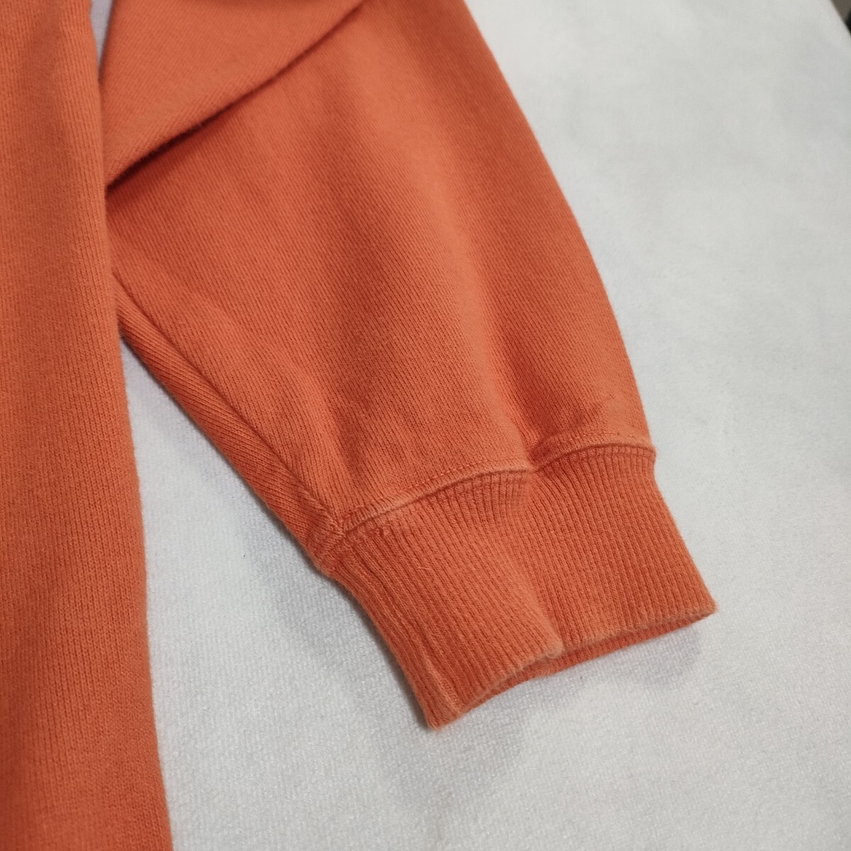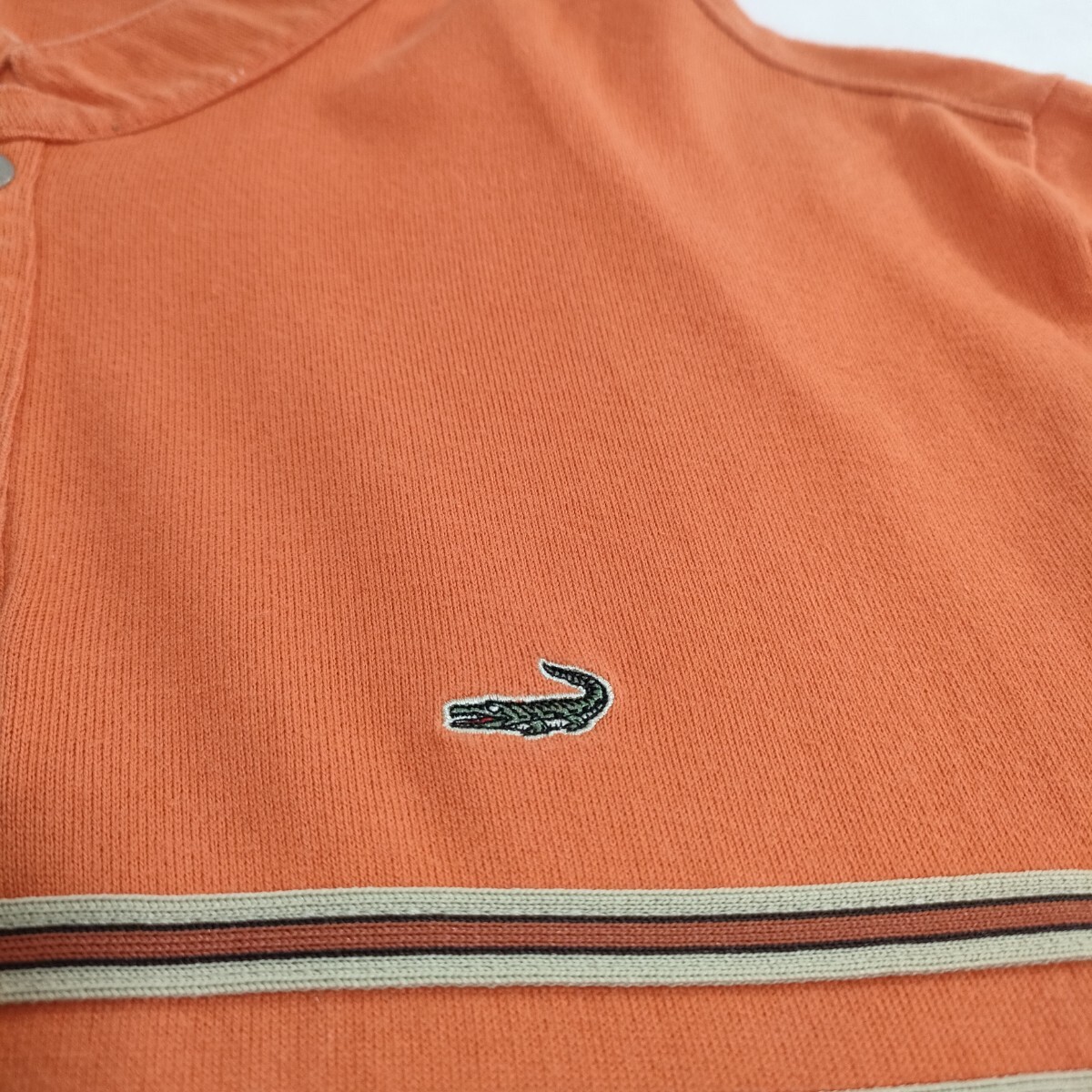 オレンジカラーが特徴的で、胸元のワニロゴ刺繍がアクセントになっています。