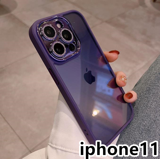 iphone11ケース カーバー レンズ保護付き 透明 お洒落 韓国 軽量 ケース 耐衝撃 高品質 紫