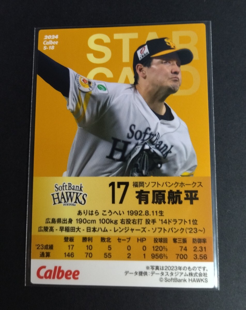 2024年カルビー 第1弾 有原航平(ソフトバンク)スターカード!No,S-18。