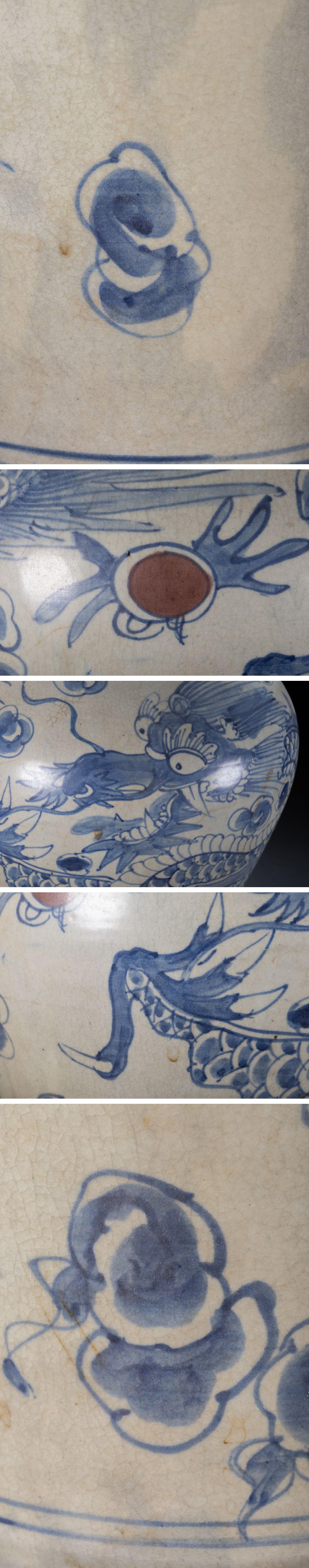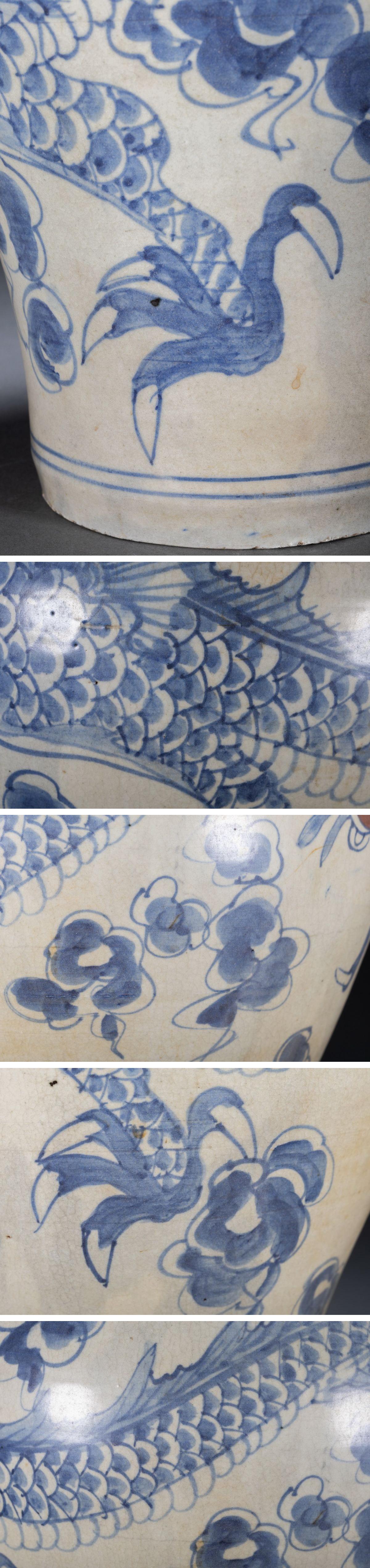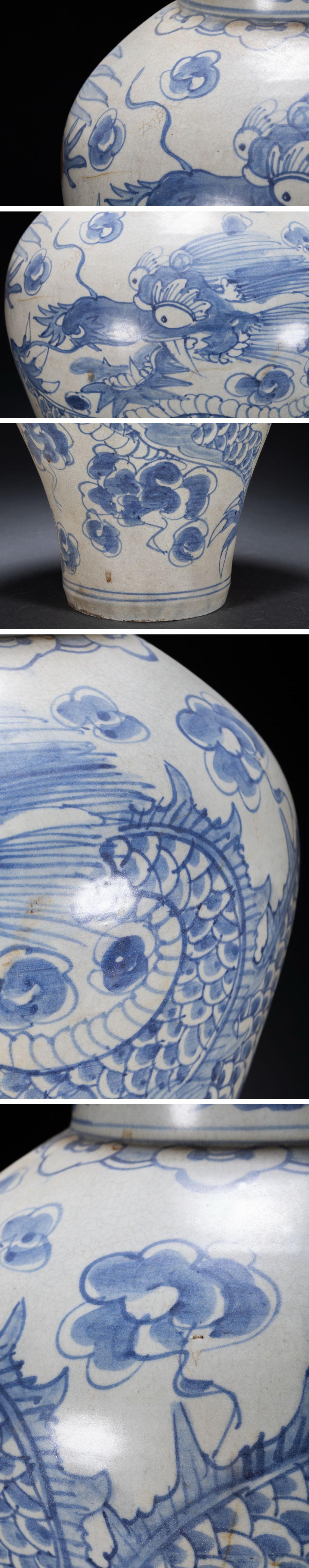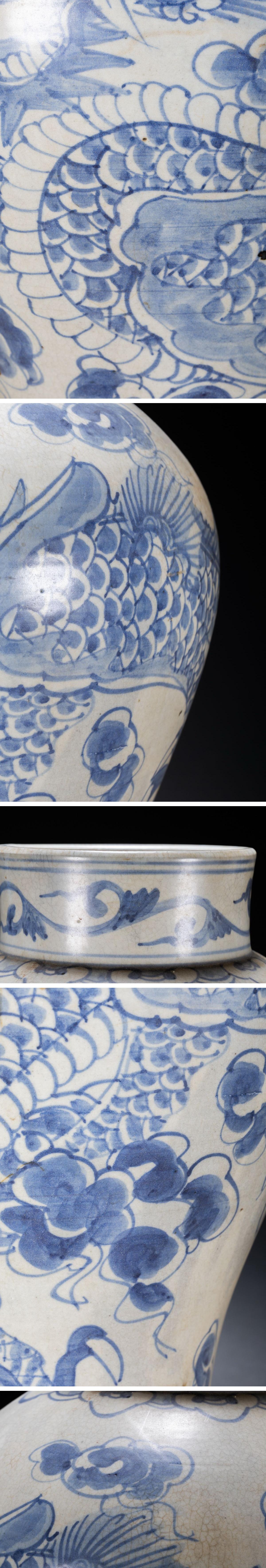【雲錦】某有名オークション購入 李朝時代 朝鮮伝来 染付き 雲龍文壺 李朝大壺 古置物 古美術 時代コレクション7L9-56S5