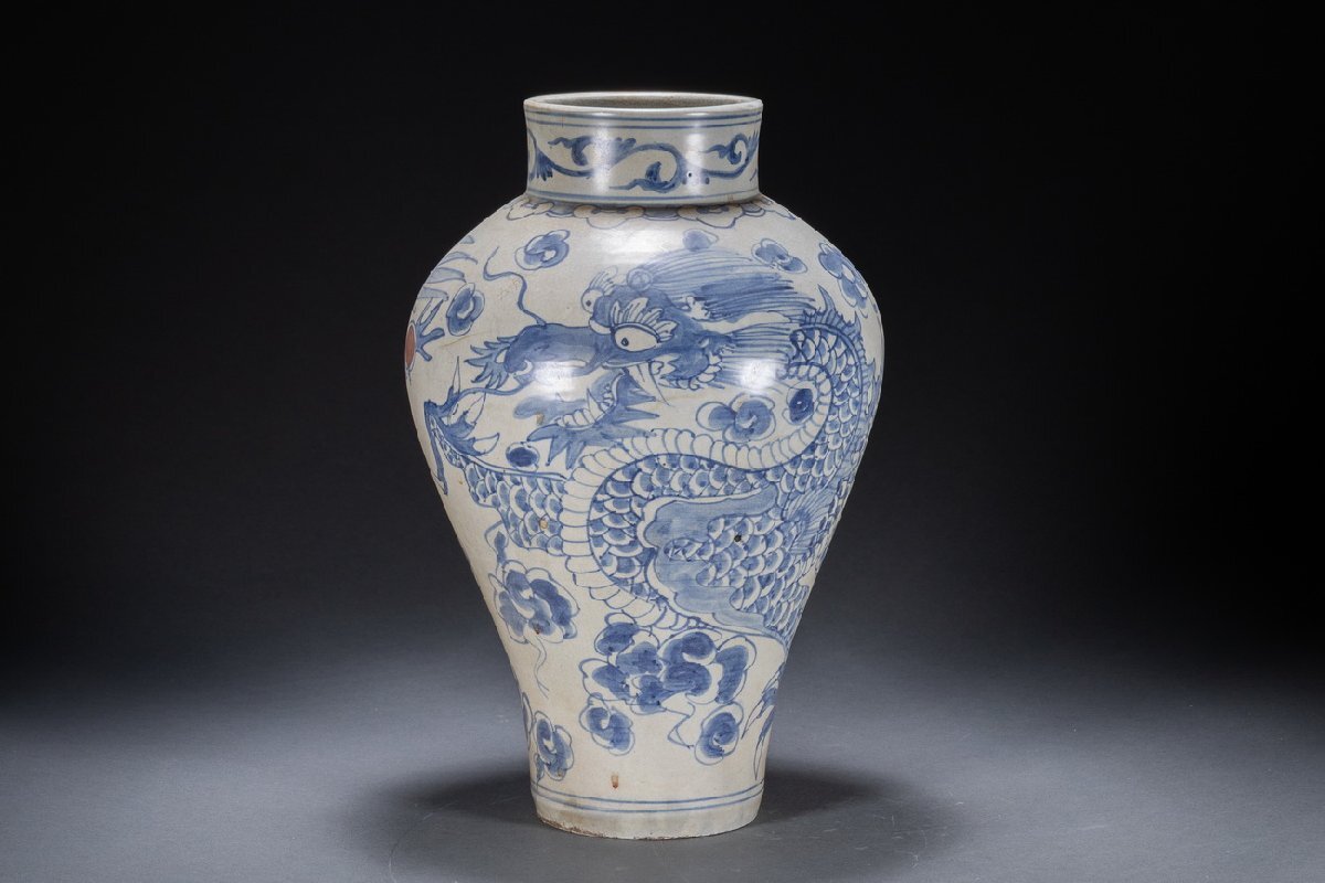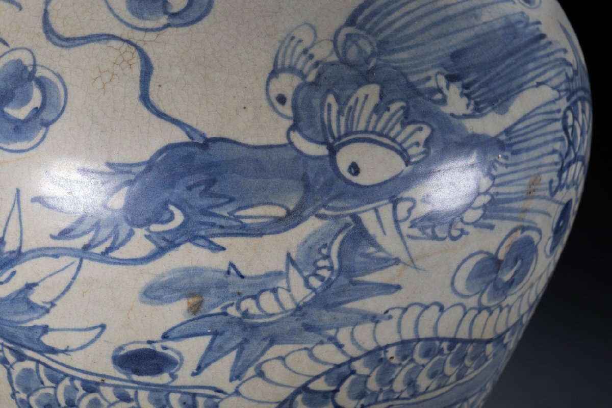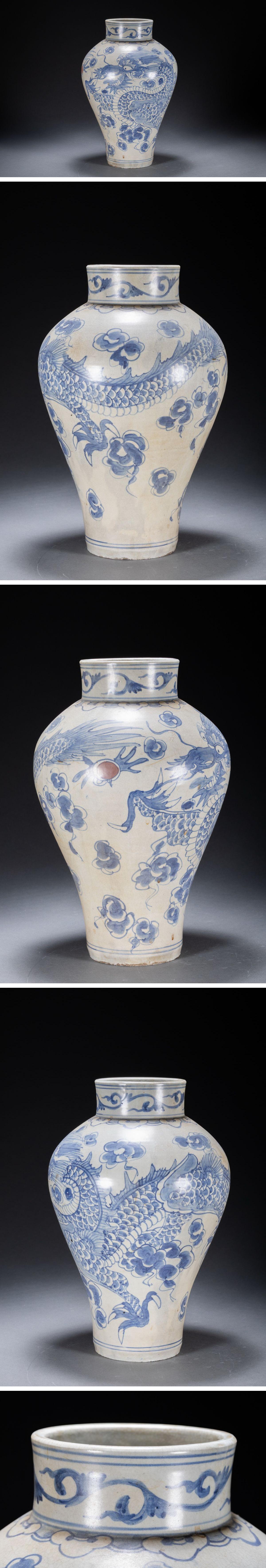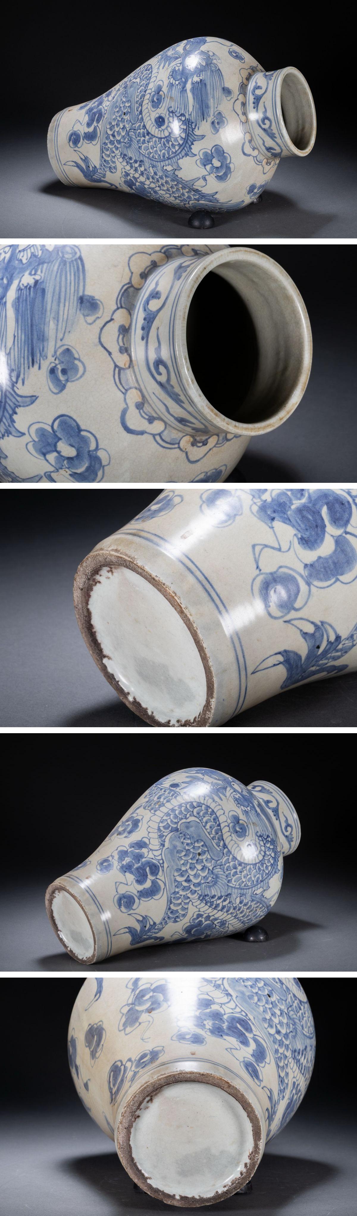 【雲錦】某有名オークション購入 李朝時代 朝鮮伝来 染付き 雲龍文壺 李朝大壺 古置物 古美術 時代コレクション7L9-56S5