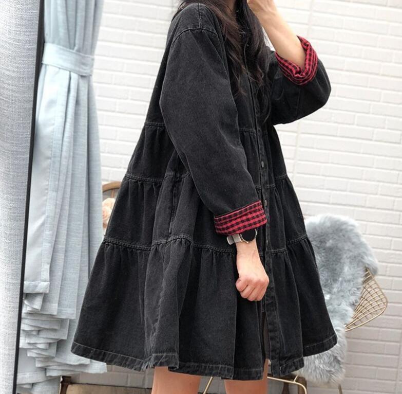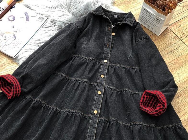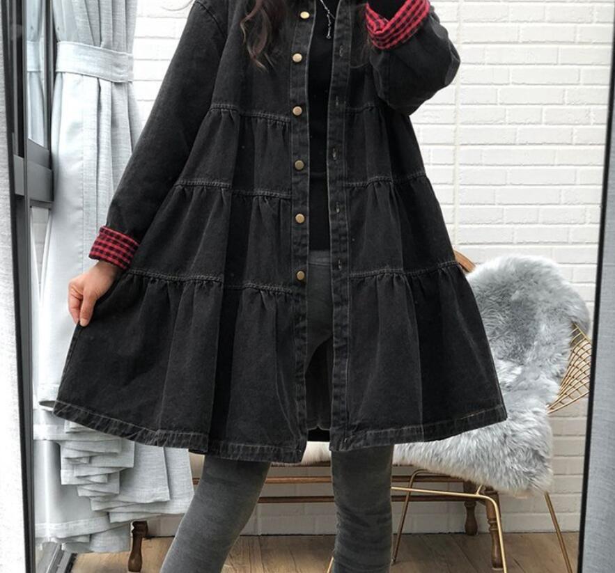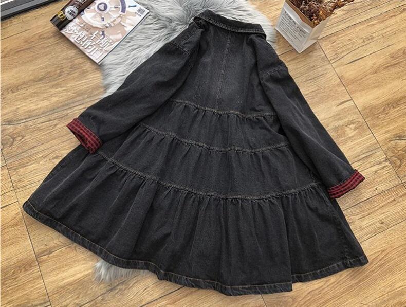 新入荷セール デニム ワンピース 羽織物 前開け 洋服ミックス アンティーク風 ロマンファッション 暖かい Aライン