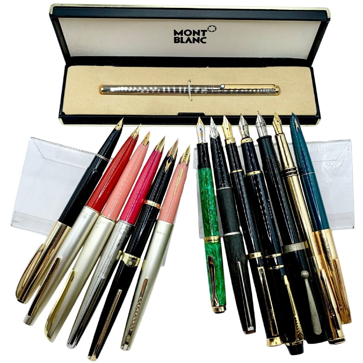 PLATINUM/MONTBLANC/PILOT 他 万年筆 文房具 18K/14K/14C-585/585 他 刻印あり 14点 おまとめ ジャンク品 コンパクトサイズ 蘇や(BBY1910)