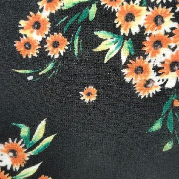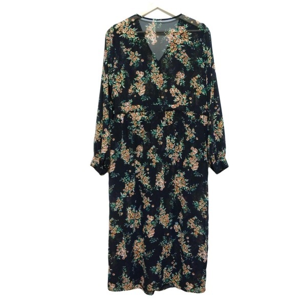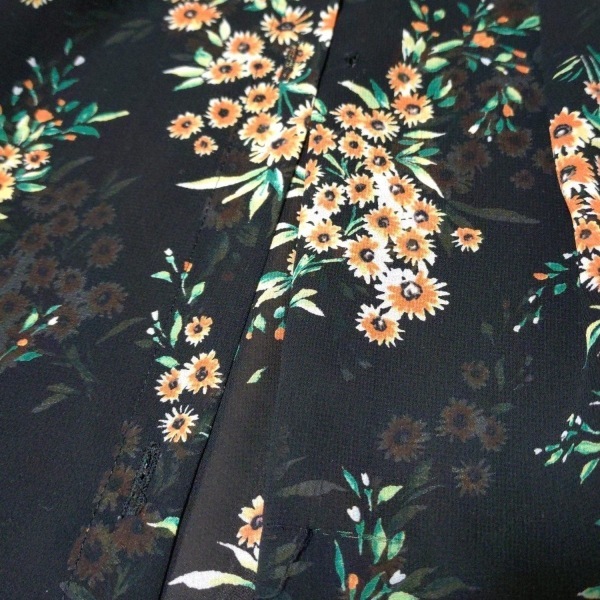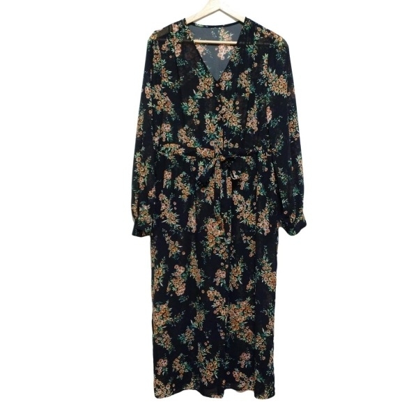 ティアラ Tiara - 黒×オレンジ×グリーン レディース 長袖/マキシ丈/花柄/シャツワンピ/シースルー ワンピース