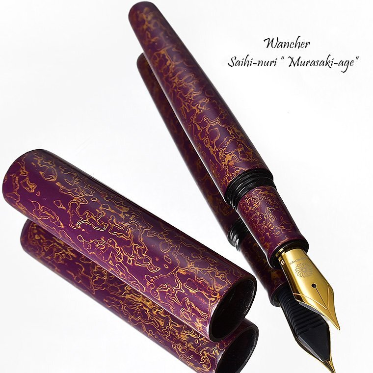 | 【Wancher/ワンチャー】 世界樹万年筆 犀皮漆 紫上げ 日本の伝統工芸 M(中字)での出品 たくさんの方に見ていただきたいので お買得な1円~スタート!新品 ![]() WANCHERより「世界万年筆 犀皮漆(さいひうるし) 」をご紹介します。 天然木を削り出して作った「世界樹万年筆」に、多くの手間のかかる工程と 高い技術力を必要とする犀皮塗を手作業で1本1本施しています。 犀皮塗の要は塗に必要な天然漆にあります。 犀皮塗の完成には、野生の漆の木から採取された「生漆」でなければならないのです。 漆を塗ることで耐久性や堅牢性を高め、さらに生漆特有の光沢は、 時を経て使い込むことで艶を増し、経年変化を楽しむことができます。 カラーは、赤上げ、青上げ、紫上げ、黒上げの4色がありますが、 今回の出品は”紫上げ”です。 ![]() *今回出品の色は紫上げのペン先ゴールドNewニブタイプです* 快適な使用感 こだわりは美観だけではなく、快適な使用感にもこめられています。 スッとボディエンドに収まるキャップと、軸の絶妙なバランス。 国産メーカー万年筆の軸長、つまり「ちょっと短め?」と思われる世界樹の軸は、 実は筆記するのに最適になるよう計算されています。 「ちょっと書くときは、キャップを外してサラサラ書く」 「じっくり書くときは、エンドにキャップをつけてゆったり書く」 といった使い分けができるのが、このバランスです。 ![]() ペン先は6号サイズと呼ばれる大型ニブ。 最新の工作技術によって作り出された、高品質の樹脂製ペン芯は、ニブをしっかりと支え 安定したインクフローを実現。筆圧をかけることなく、ペン先からインクが流れてきますので、 長時間の筆記でも疲れることはございません。 ![]() 犀皮漆の製作工程 1. 野生の漆の木から樹液を採取し、ろ過精製します。 2. 下地塗のあと、凸を作るように漆を乗せて乾燥させます。 この工程が最後の研ぎ出しで現れる模様に影響するため重要な作業となります。 3. 全体に隙間なく金箔を貼ります。 これは模様を金色で縁取るための工程です。 4. 金箔の上から平らになるまで何層もの色漆を塗り重ねます。 漆の層は30~40層までに及び、乾燥してから塗り重ねるので塗り終わるまでに数か月を 要します。 5. 最後に研ぎ出して模様を浮かび上がらせます。 その際、薄い金箔の線を消さないよう注意深く削り、磨き上げたら完成です。 ![]() 犀皮漆の歴史 中国の宋王朝時代、徽州(きしゅう)で栄えた犀皮漆器は、非常に高価な芸術品であり、 一般市民は手にすることのできない王室への献上品とされてきました。 徽州の職人たちが何世代にもわたって守り続けた犀皮塗の技法は、明清時代に最も発展し、 その後様々な要因で衰退することとなりました。 ![]() *コンバーターデザインは異なる場合がございます シンプルなフォルムに、塗ならではの手ざわり。 ほかでは味わえない華やかさ、渋さ、そしてぬくもりをお楽しみください。 犀皮塗は手作業での工程を経て、最後に丁寧に研磨をすることで独特の文様が 浮かび上がってきます。 表面には磨きの痕跡が見られることもありますが、それは犀皮塗の魅力でもあります。 ![]() *************************************************************** ≪≪商品詳細≫ ワンチャー世界樹万年筆&-漆- 犀皮漆 紫上げ ■万年筆■ ペン先 : ステンレススチール サイズ : M(中字) 機構 : カートリッジ/コンバーター両用式 *コンバーターは欧州規格 長さ : 約140.5 mm (未使用時)/ 165 mm(筆記時) 径 : 約16.5mm(最大径)/10.5mm(最小径) 重さ : 約25g キャップ : ねじ込み式 色 : 天然木・犀皮漆 付属品 : WANCHERケース・コンバーター内蔵・カートリッジ3本 (写真のコンバーターデザインと異なる場合あり) *お使いのモニター、撮影条件などの理由で実際の商品と 若干色合いが異なる場合がございます。 *柄の出方には個体差がございます。 天然木を使用しているためペンの表面には磨きの痕跡が見られる こともあります。仕様になりますので予めご了承ください。 *************************************************************** |