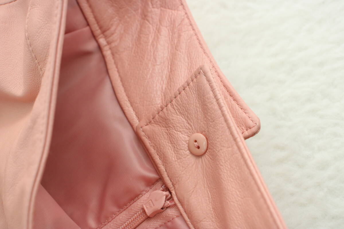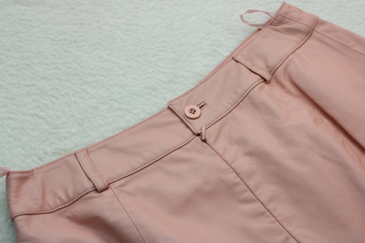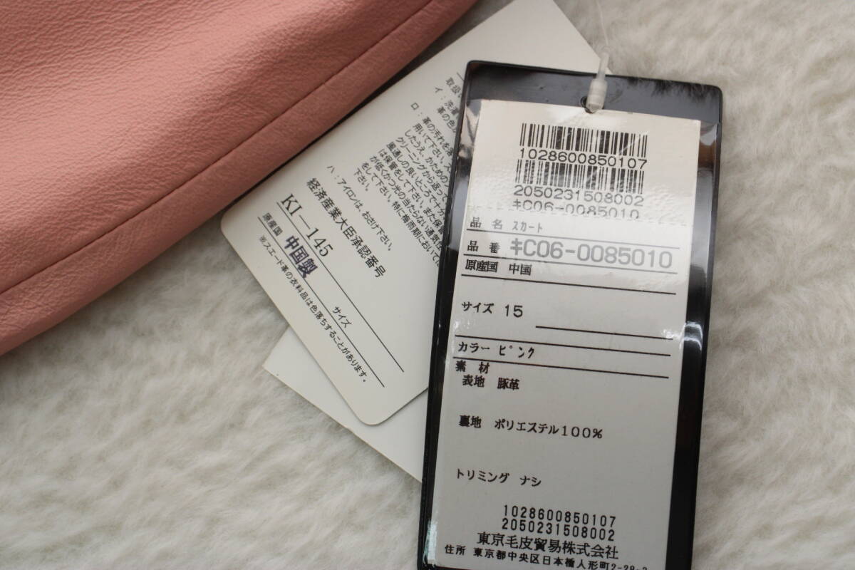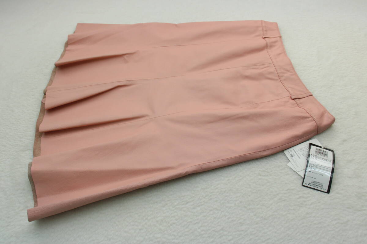 6058 新品タグ付き 高級本革レザースカート ピンク15号