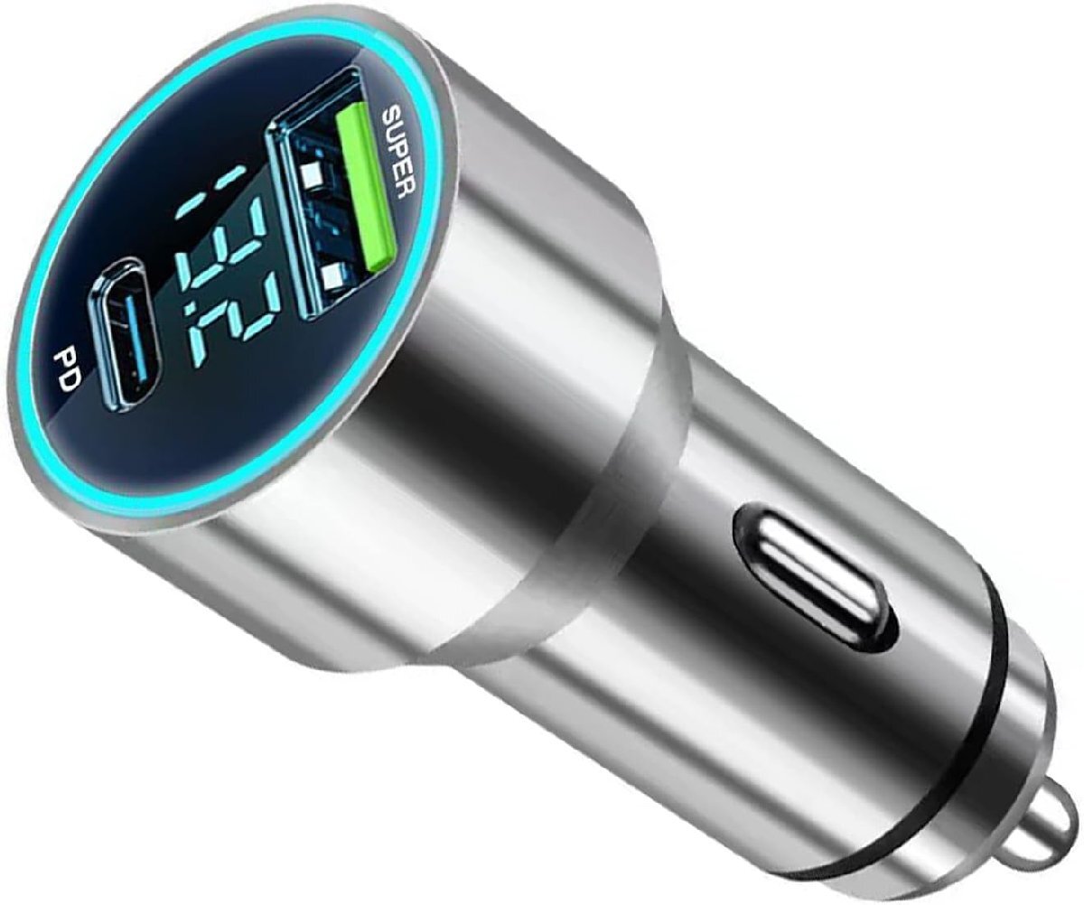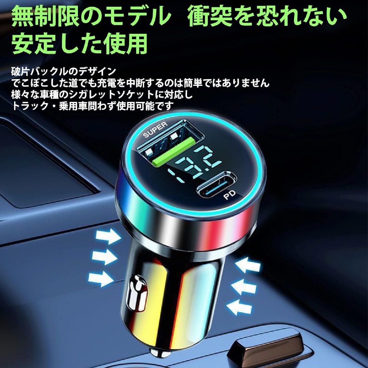 PD+USB シガーソケット 2口 車載充電器 カーチャージャー スマホiPhone車内充電器 電圧計 LED表示