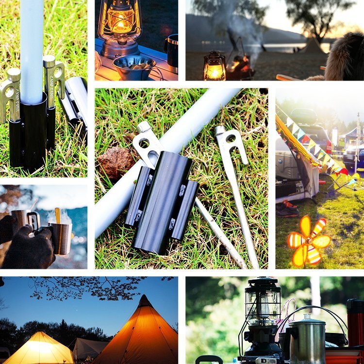 このセットで2本のポールを固定でき、テントポールやタープポールを地面にしっかり固定します。