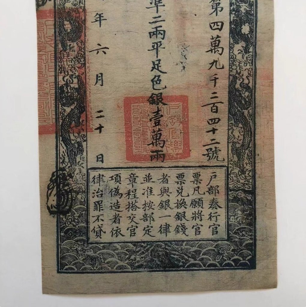 送料無料 中国紙幣 銀票 古銭 清 咸豊三年 一万両 美品 外国紙幣 簡易包装 郵便発送 ZH534