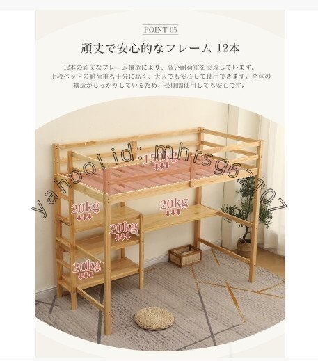 • 【38Cm高さのサイドフレーム付く】安全性を重視したデザインのロフトベッドは、頑丈な31.5cmのサイドフレームを備えています。美しいデザインとバランスを保ちながら、安心感を提供します。