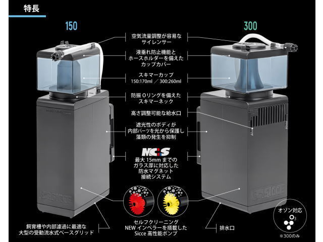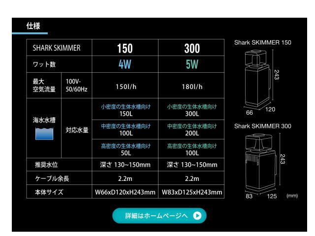 | 商品名:SICCE シャークスキマー 150 SICCEから小型高性能スキマーが登場 防水マグネット装備の内部濾過に最適なスリムデザイン SICCE製のポンプならではの省エネと高効率なスキミングを実現 ・省エネルギー、高効率スキミングを両立 ・セルフクリーニングNEWインペラーを備えたSICCE製高性能ポンプ搭載 ・スリムなコンパクトボディで内部濾過に最適 ・防水マグネット着脱で自由度の高い設置が可能 ・空気流量調整が可能で吸気音を抑制するサイレンサー付き ・簡易メンテナンス(工具不要) ■商品仕様 型番:SHSKM150J 商品名:SHARK SKIMMER 150 ワット数:4W 最大空気流入量:100V 50/60Hz 150l/h 対応水量:50L~150L 推奨水位:深さ130~150mm ケーブル余長:2.2m 対応ガラス厚:15mm ■フランジ付き水槽に設置の場合 フランジ幅20mm以下:使用可能 フランジ幅20~29mm:フランジ底面から水面まで40mm以上必要 フランジ幅30mm以上:カップに干渉するため使用不可 ※対応水量 小蜜度の生体水槽向け:150L 中蜜度の生体水槽向け:100L 高密度の生体水槽向け:50L ※こちらはシャークスキマー150、1台のお届けです。 シャークスキマー300も出品しております。 |