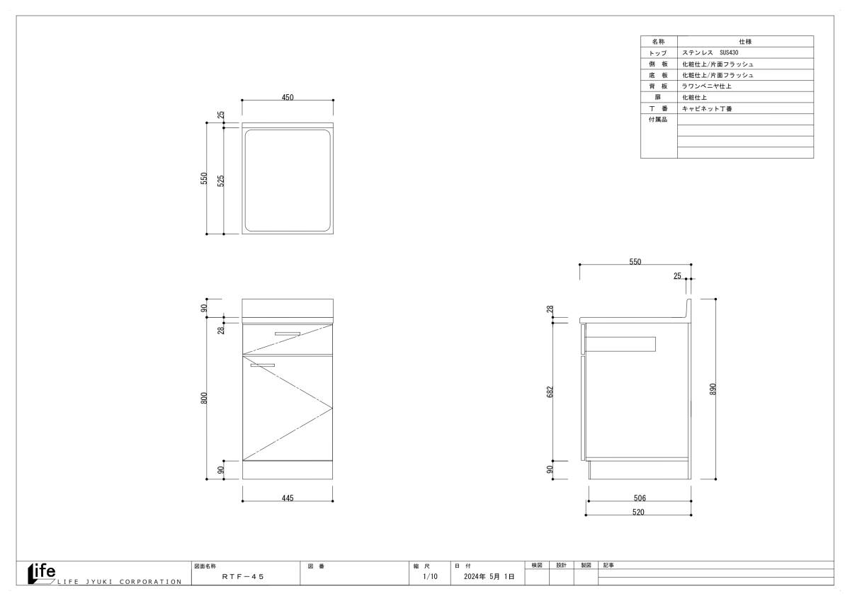 【ライフ住器】RTF-45 13色対応 調理台 450×550【日本製】