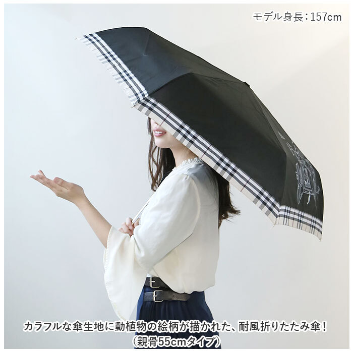 | 商品説明 | ・・カラフルな傘生地に動植物の絵柄が描かれた、耐風折りたたみ傘!(親骨55cmタイプ) ・【丈夫なグラスファイバー製】 ・親骨のパーツに、強度と柔軟性に優れたグラスファイバーを採用。軽量でしなやかな素材なので、風の強い日だって安心。 ・【耐風設計】 ・強風で傘骨が反り返ってしまっても、そのまま閉じれば元通り!簡単に元の形に戻るラクラク耐風設計。 ・【安全カバー付き】 ・開閉時に指先や爪を挟むのを防止する安全カバー付きで、ボタンを押して持ち上げると自然と傘生地が開く設計。ネイルアートを施した指でも安心して開閉可能。 ・【軽量コンパクト】 ・・3段式に小さく折りたためて軽量コンパクト。中骨はスチール&アルミシャフトでスムーズに伸縮し、親骨約55cmの程よいサイズに傘生地が広がる♪ ・【2種類のハンドル】 ・手元ハンドルは、傘を持つ指先をたおやかに演出する華奢なデザインのアルミゴールド、ナチュラルな木製タイプの2種類。 ・【スナップボタン式】 ・傘生地を留めるバンドは、スナップボタンでバチンっと留めやすい! ・【収納袋つき】 ・傘生地と同柄の収納袋付きで、持ち運びにも便利。 ・【はっ水機能】 ・雨粒をしっかり弾くはっ水加工済みなので、お天気が不安定な日にバッグの中に忍ばせておけば安心◎(激しい雨や長時間のご使用では、雨が染み込むことがあります。) |