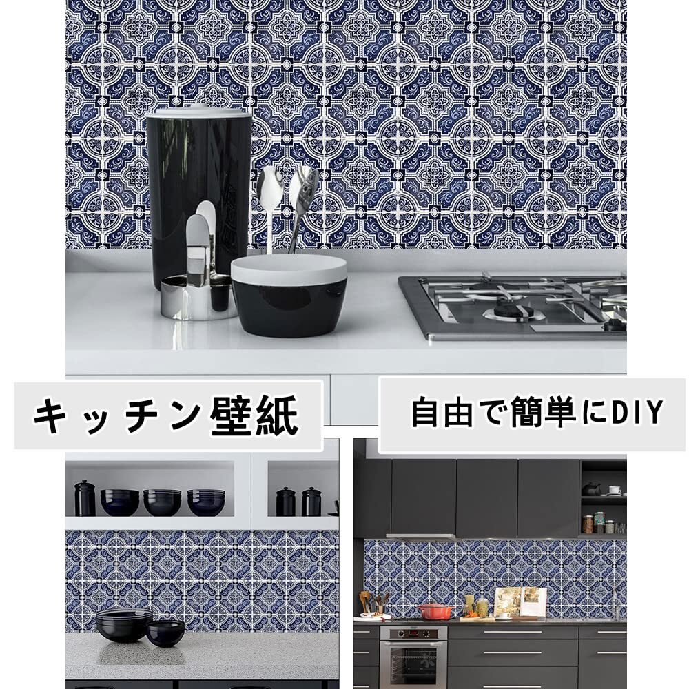 【実用性&無臭無毒の壁紙シール】貼り付けも簡単で、接着材や目地材は不要です、台紙から剥がしてそのまま貼り付け出来ます。防水性、防汚性にも優れ、お手入れは濡れタオルで拭き取るだけです。キッチン周りで気になる油汚れや、日常のほこりも簡単にお手入れ出来ます。デザインが素敵なのでキッチンの雰囲気がガラッと変わってお料理をするのも楽しくなりました♪