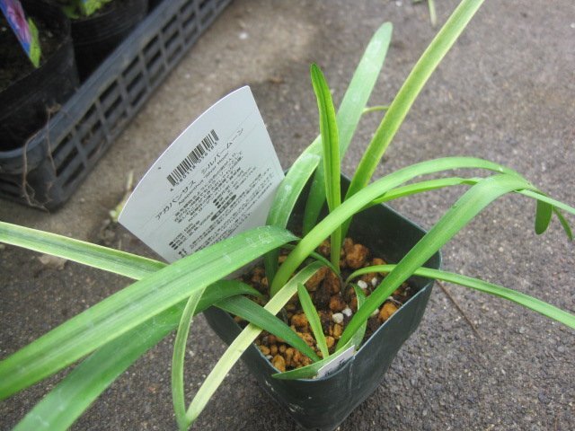 周年斑入り葉ではないものの、しっかりと花も咲き、斑も楽しめる季節があり、葉やけも起こしにくいので、トータル的に斑入りアガパンサスの中で、本種はおすすめです。