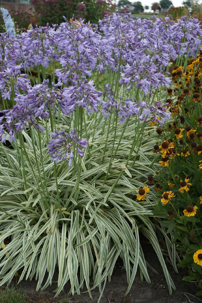 斑入りアガパンサスは数種が知られていますが、ほとんど花が咲かない品種もある中で、本種はしっかりと花が咲いて葉とのコントラストが楽しめます。