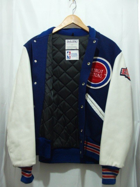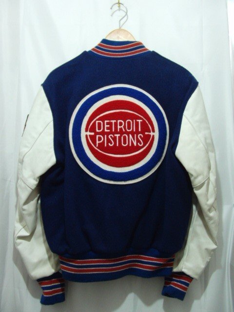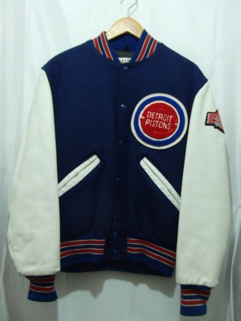 DETROIT PISTONS 袖レザーのスタジャンです。 少々使用感はありますが、大きなダメージはなく中古並の状態です。 |