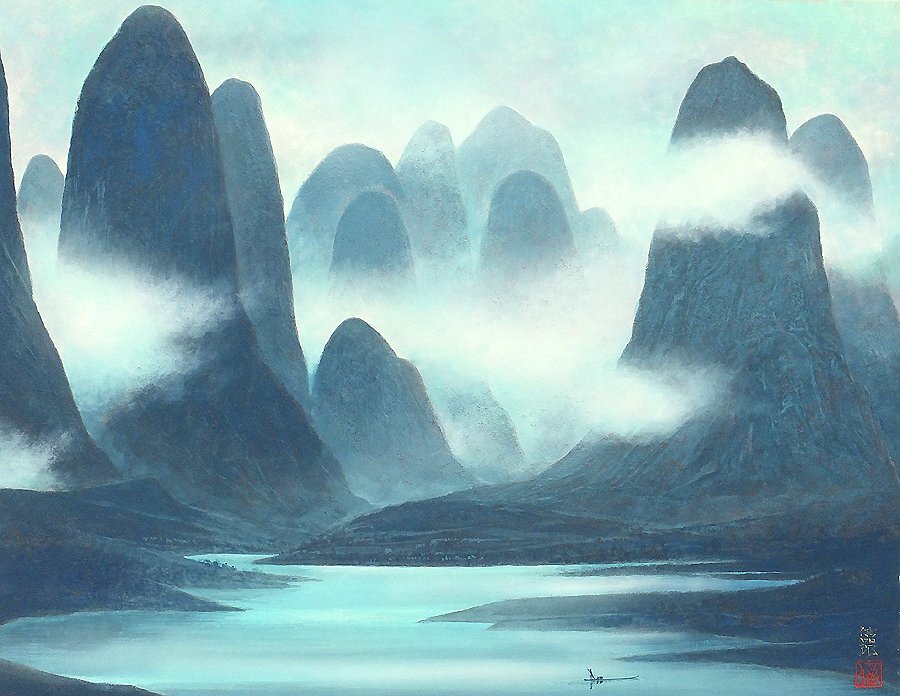【GLC】角田信四郎 「漓江雨余」 日本画10号共シール 院友 群馬美術会常理理事 師:高橋常雄 ◆逸品!