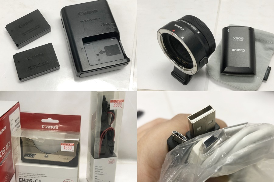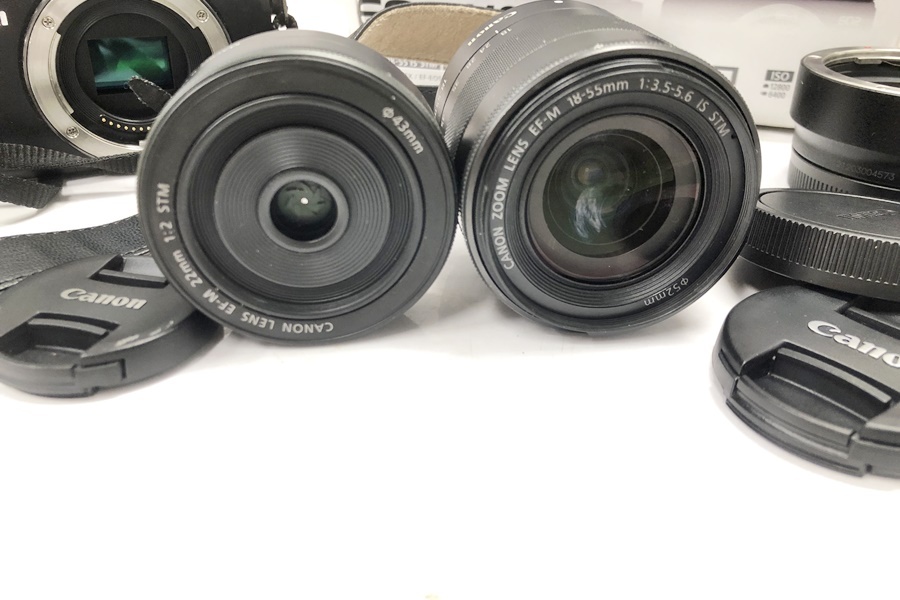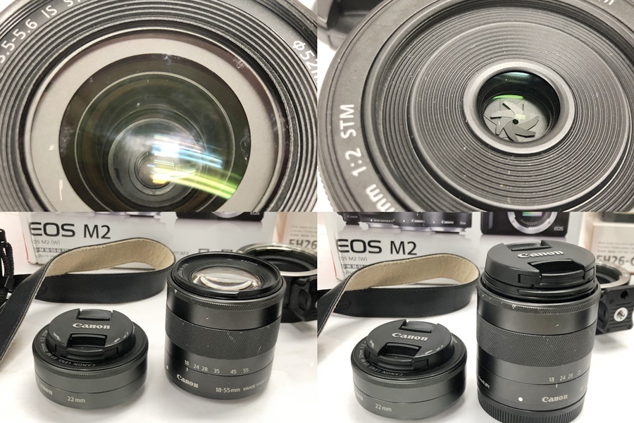 Canon EOS M ダブルレンズキット EF-M 18-55mm f3.5-5.6 IS STM EF-M 22mm f2 STM ボディジャケット ネックストラップ セット 「付属品」・・・ 写真のものがすべてになります。