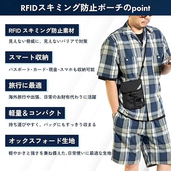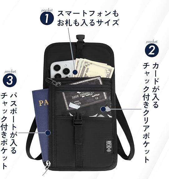 Amazon | [KURASUUMO] クラスーモ セキュリティポーチ 【海外旅行 RFID スキミング スリ対策】 ショルダー シークレットポーチ 薄型 貴重品 軽量 旅行 防犯グッズ