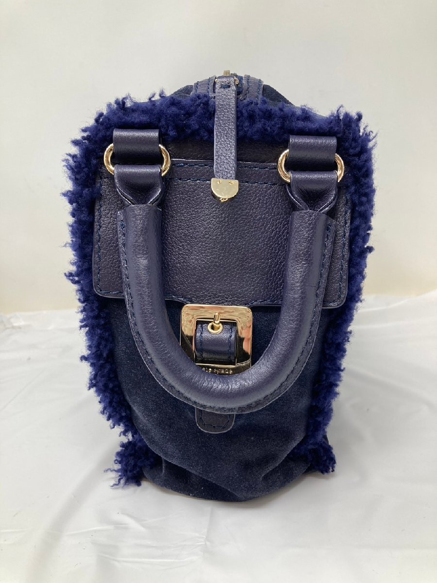 ◆KateSpade ケイトスペード ハンドバッグ 青系 スエード×ボア 保管袋付き 中古◆13958