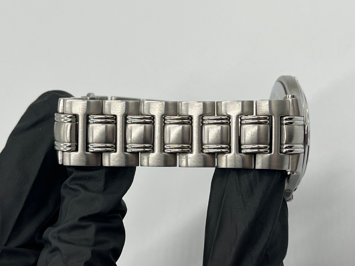 ブラック文字盤にシルバーのインデックスが映える、シンプルかつ高級感あふれるデザインです。