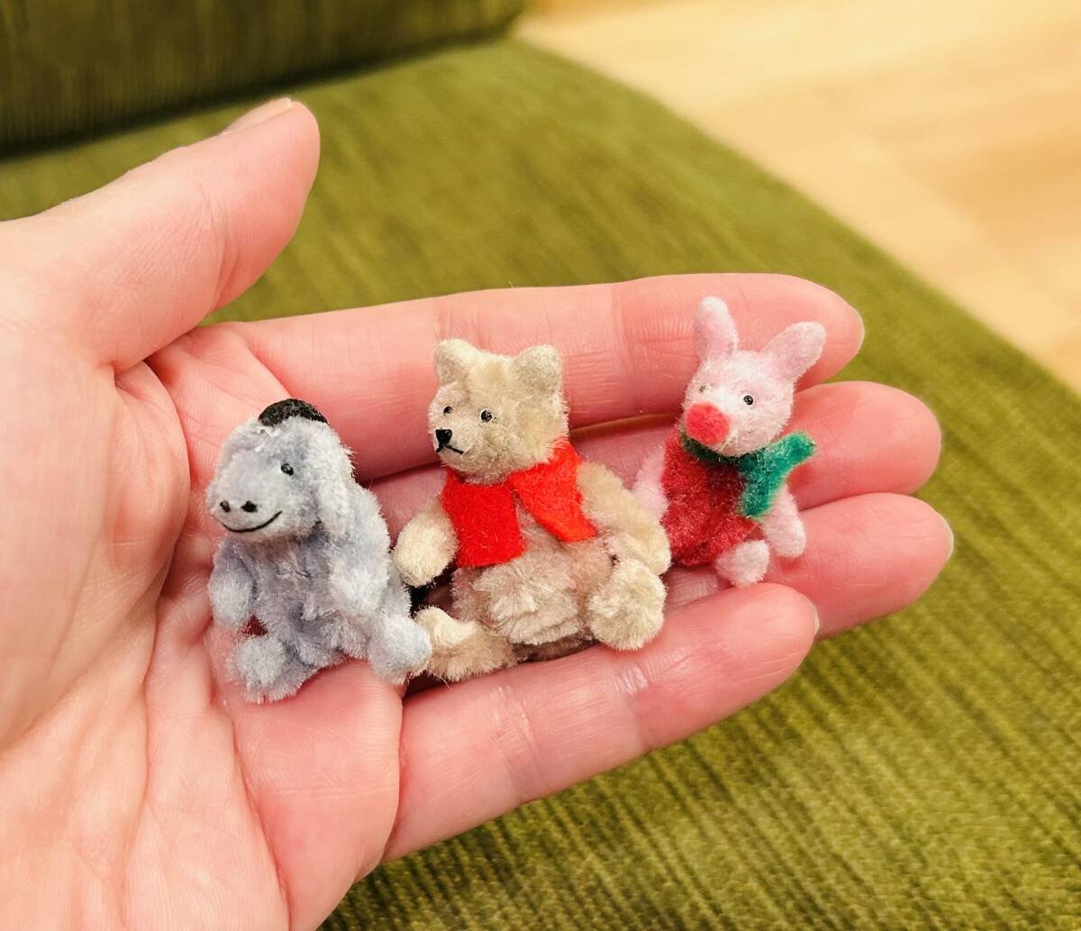 ハンドメイド ミニチュア モール テディ ロバ ブタ 3体セット BOX付き ドールハウス 手作り人形 テディベア