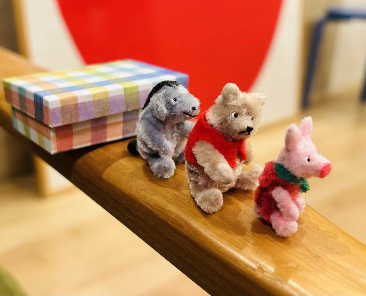 ハンドメイド ミニチュア モール テディ・ロバ ・ブタ 3体セット BOX付き