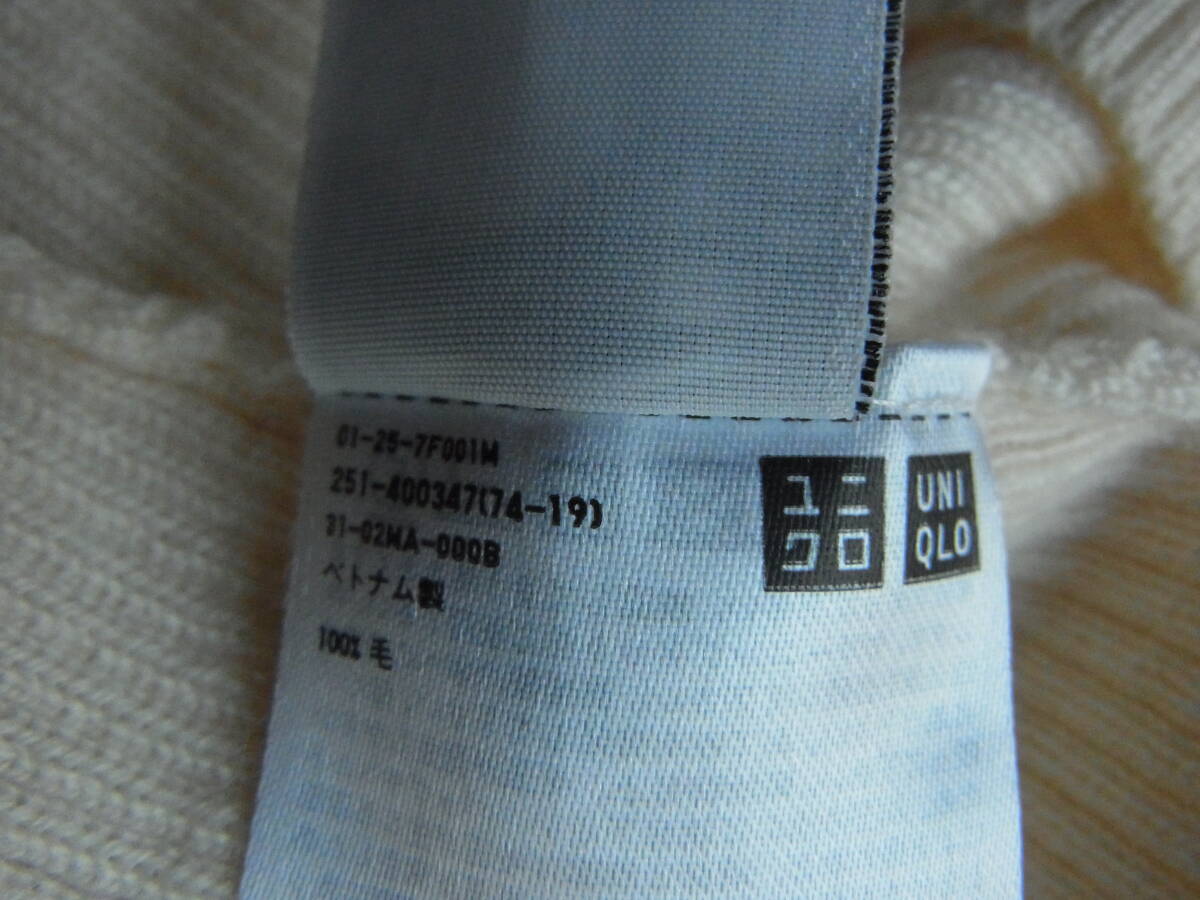 UNIQLO ユニクロ ウール100% リブ編み タートルネックセーター サイズ L オフホワイト系