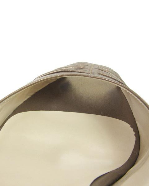 | 大人キレイなデザインのパンプス。光沢のあるブロンズで、お洋服とコーディネートしやすいお色です。きれい目スタイルにも、カジュアルスタイルにもあわせて頂けるデザインです。 |