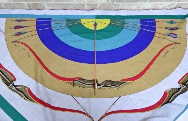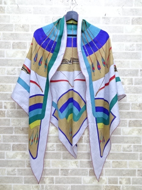 ★1056MZ7-A HERMES エルメス トライアングル ジェアン 虹 ストール
