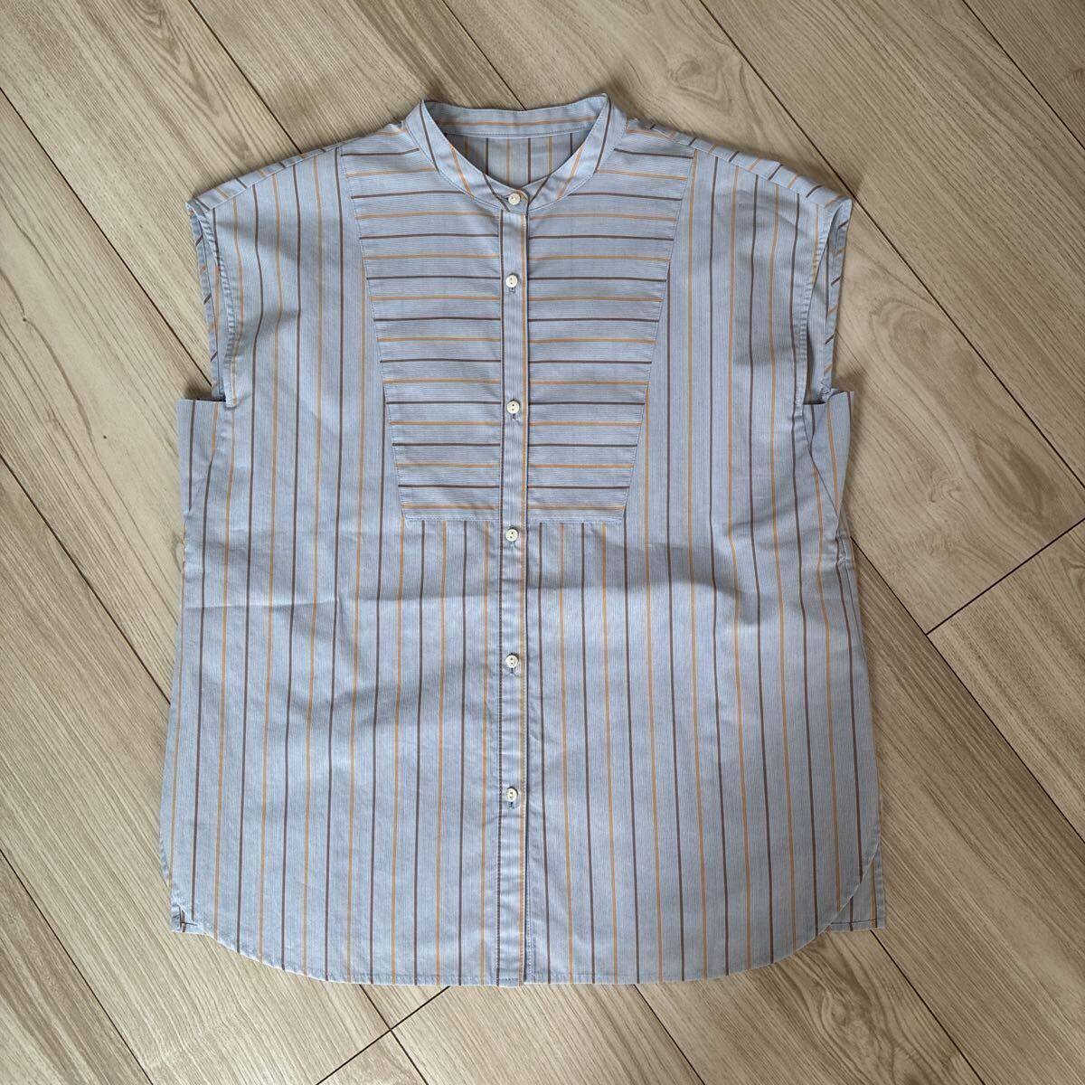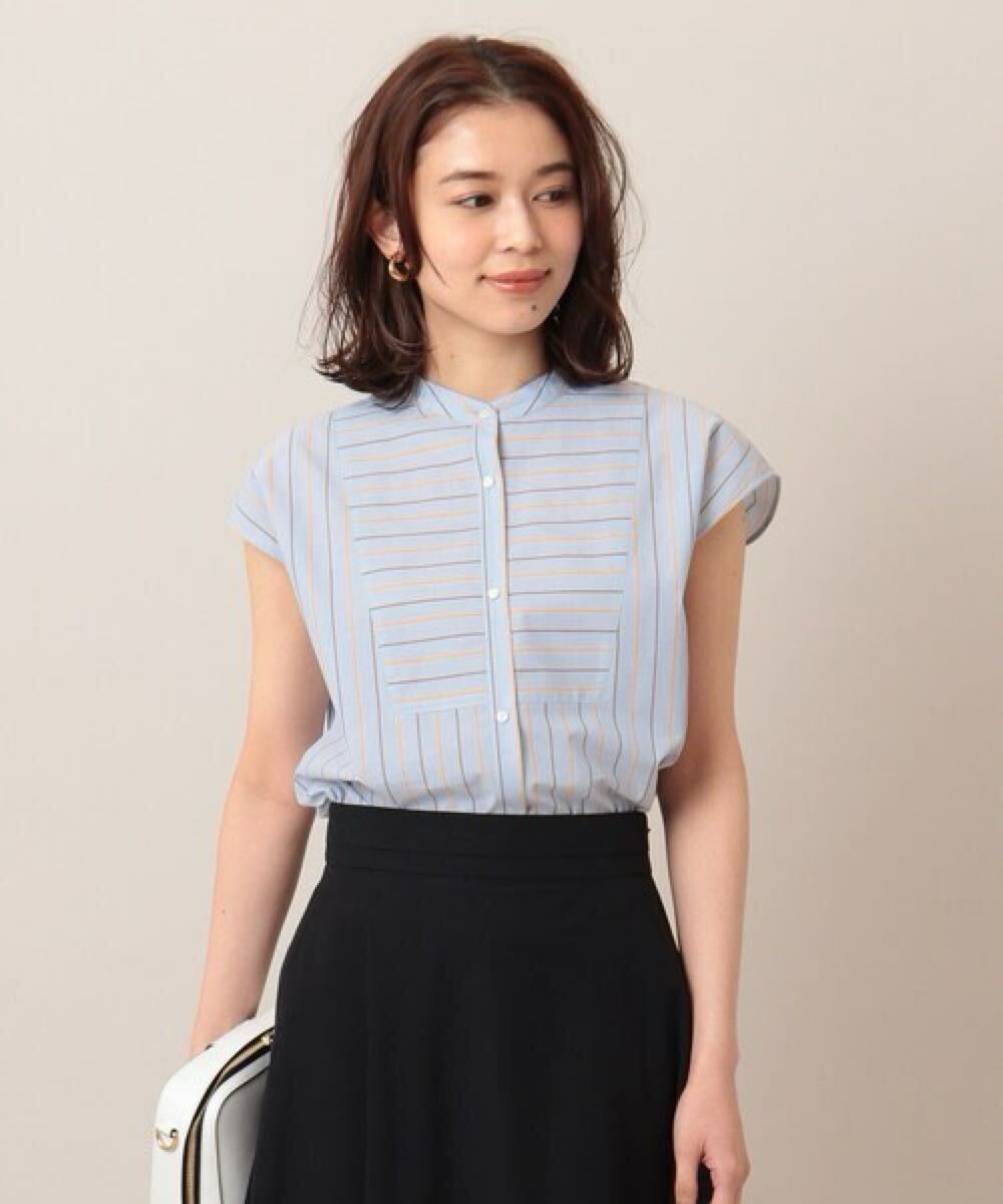 未使用 未着 アンタイトル UNTITLED【通勤】ストライプ柄 フレンチスリーブブラウス 洗える