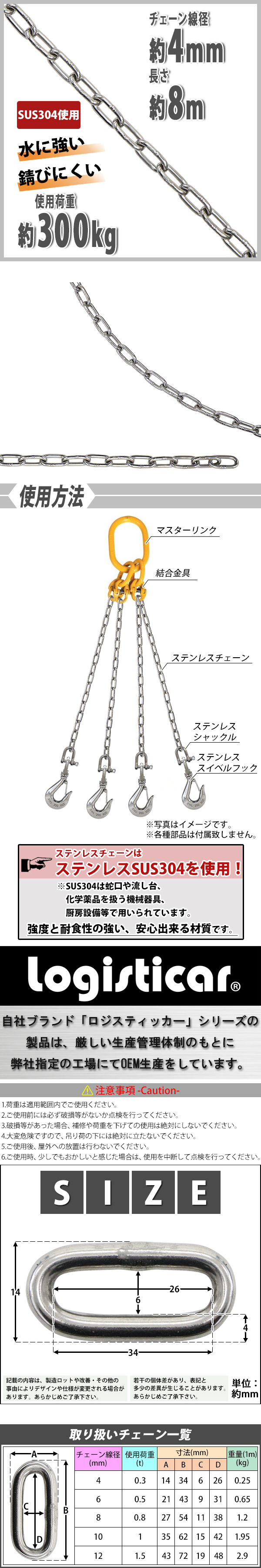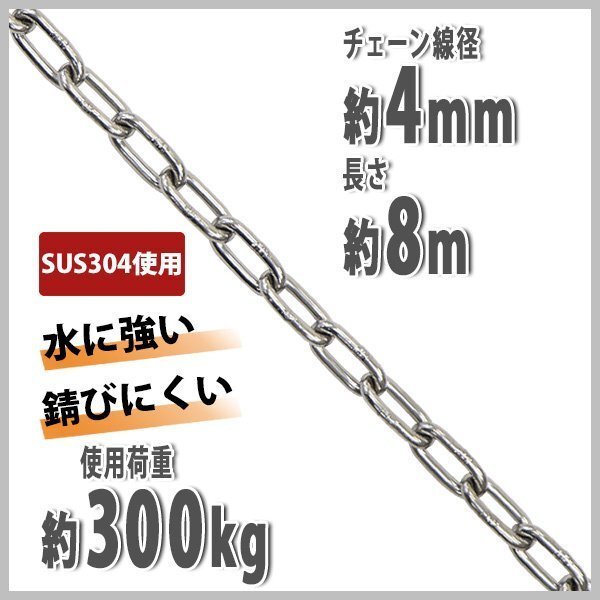 | 商品名 | 送料無料 ステンレスチェーン チェーン 線径約4mm 使用荷重約300kg 約8m SUS304 JIS規格 ステンレス製 鎖 くさり 吊り具 チェーンスリング スリングチェーン リンクチェーン チェイン 金具 クレーン ホイスト 玉掛け 吊り上げ 建築 工場 水まわり suschain4mm8m |