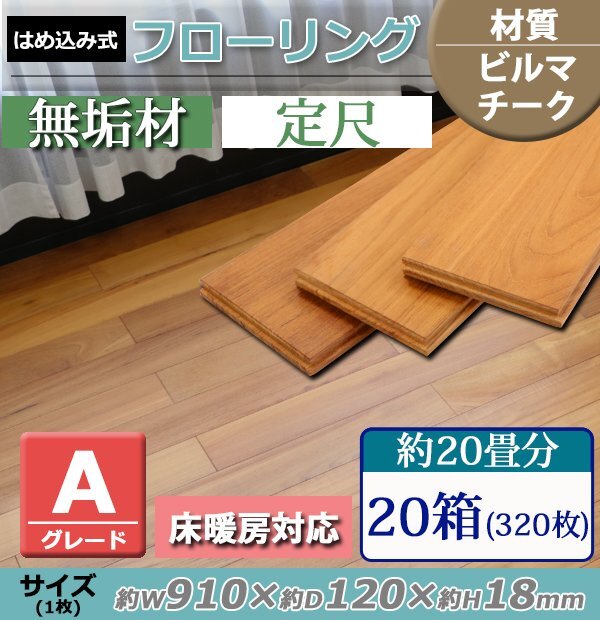 | 商品名 | 送料無料 フローリング 床材 ビルマチーク 無垢 Aグレード 定尺 はめ込み 20箱 約20畳分 約34.94平米 320枚 約W910×D120×H18mm 床暖房対応 OSMOオイル 実矧ぎ フロアタイル 低ホルムアルデヒド 床材 無垢材 天然木 貼り替え 張替え 補修 リフォーム diy floorsteaka20p |