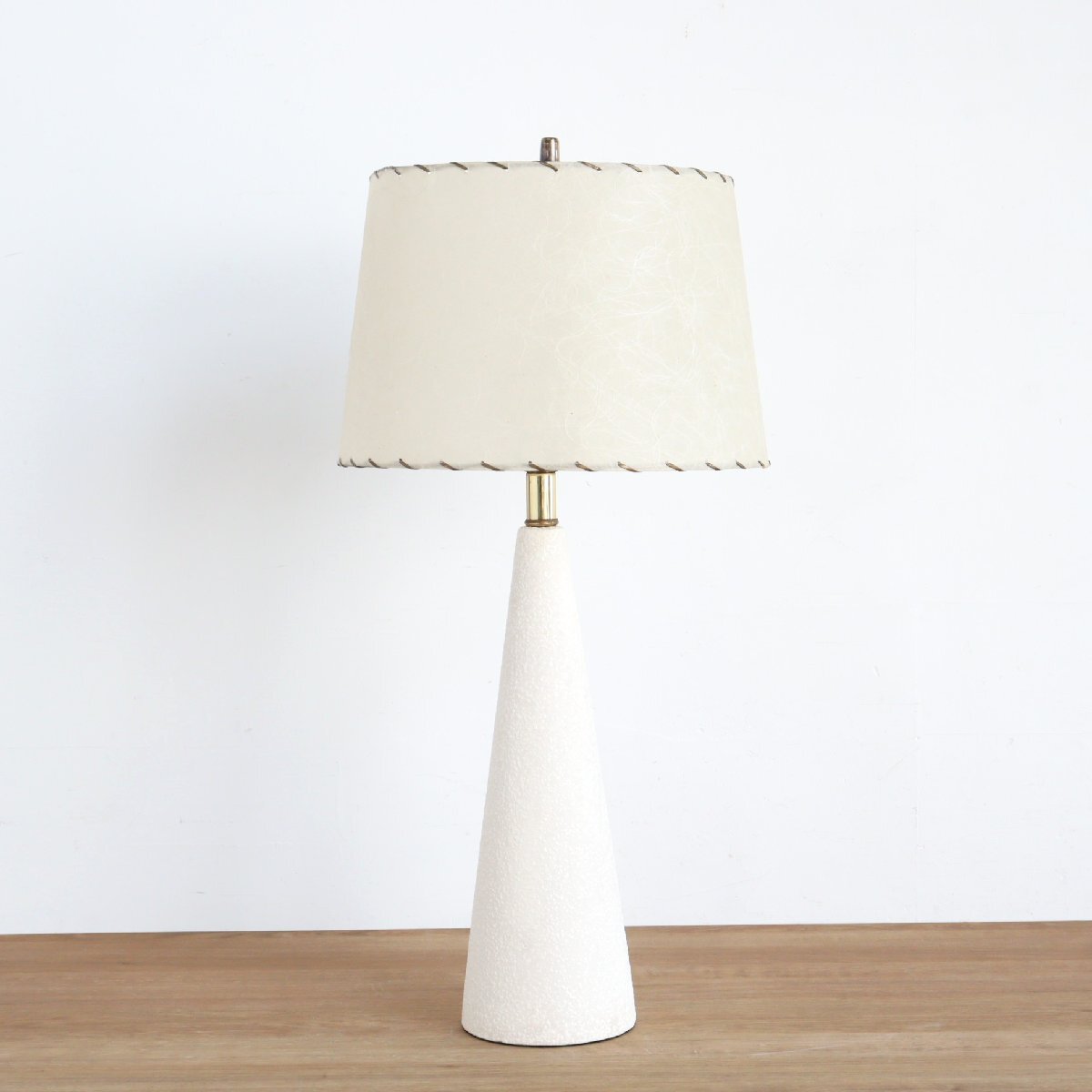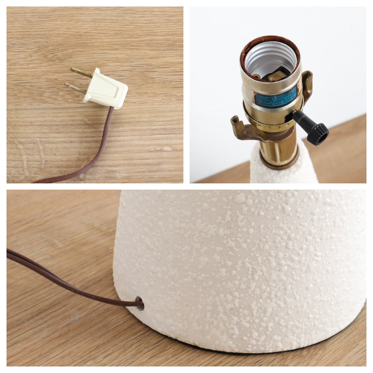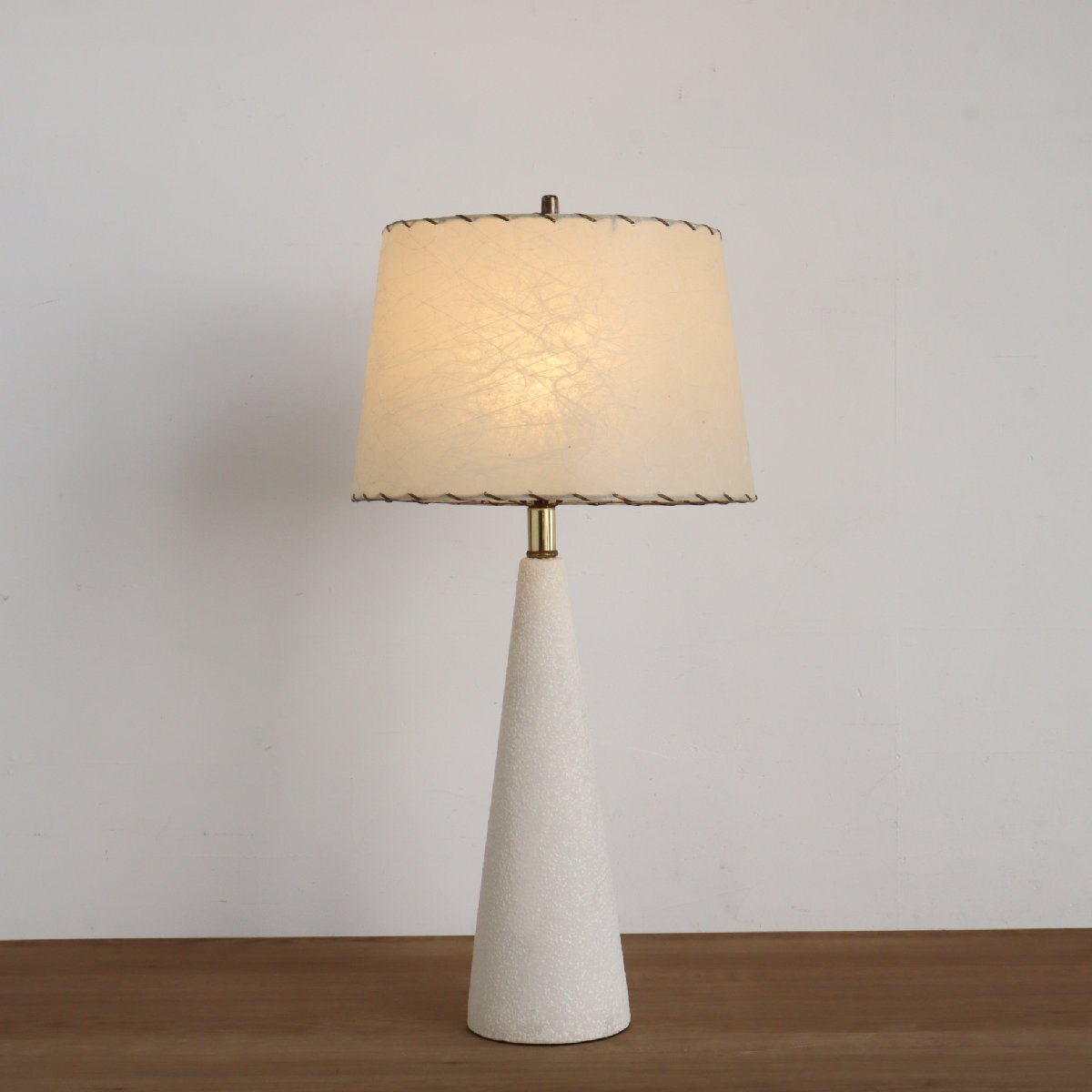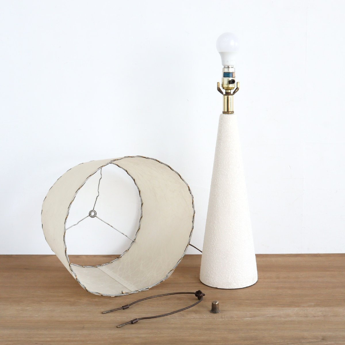 | 商品説明 explanation | ミッドセンチュリー期のテーブルランプです。 本体は落ち着いたホワイトカラーの陶器製で、まるで水滴のような細かい凹凸模様が施されています。 また、グラスファイバーが入った樹脂製のシェードは、明かりを灯すと優しく温かい雰囲気に包まれます。 ミッドセンチュリーらしいデザインで飾るだけお部屋のアクセントになります。 ご自宅やお店の照明にいかがでしょうか。 |