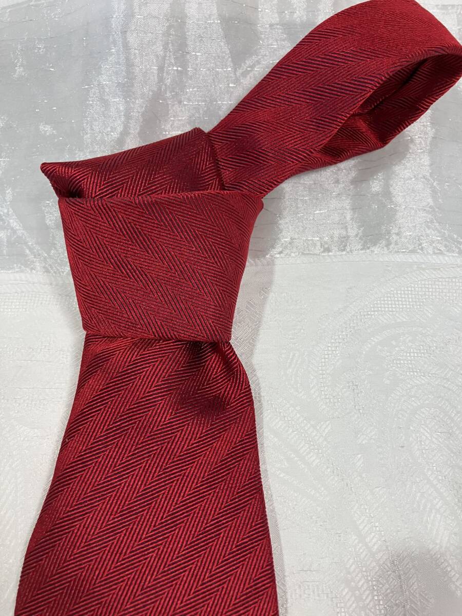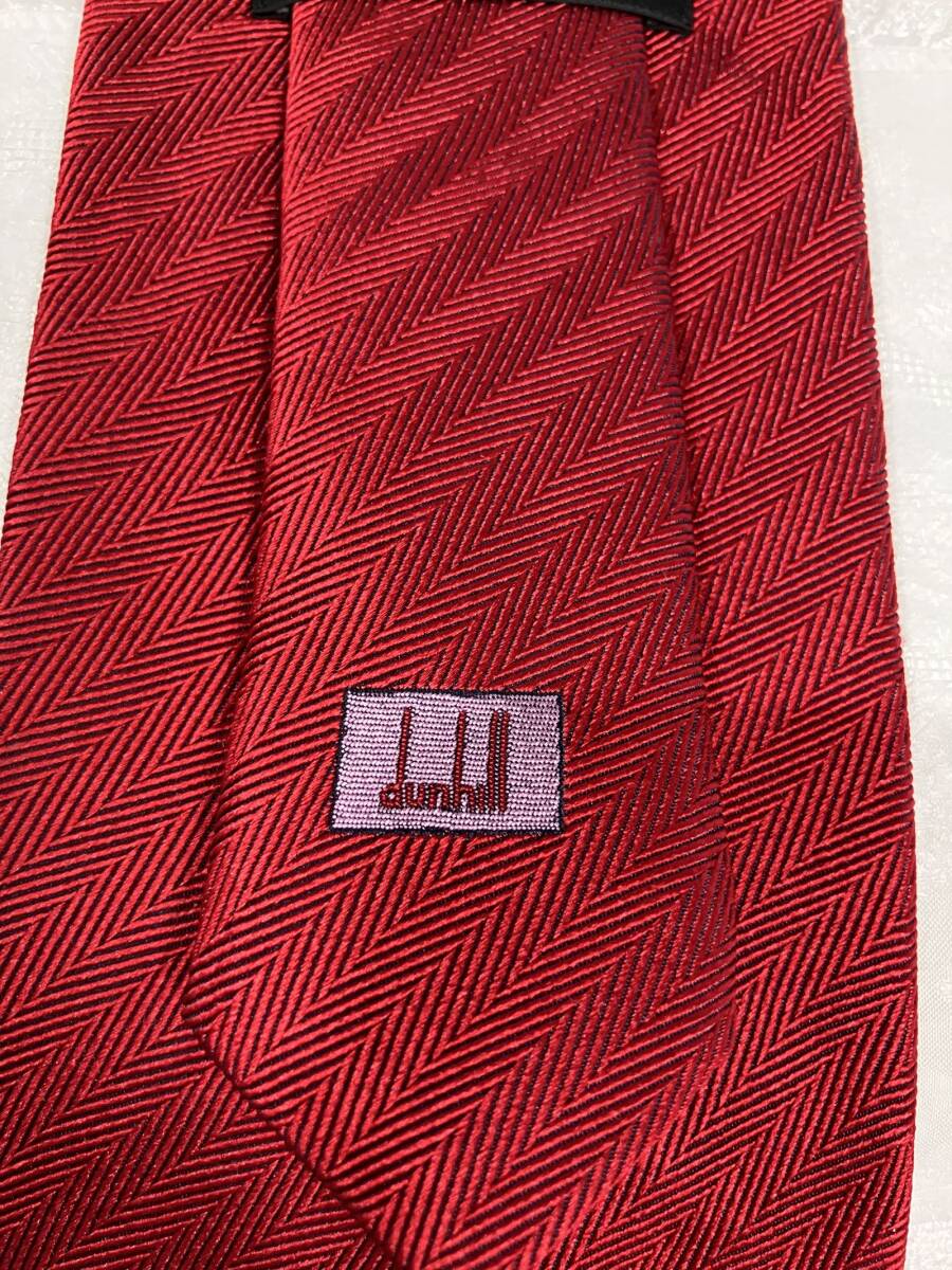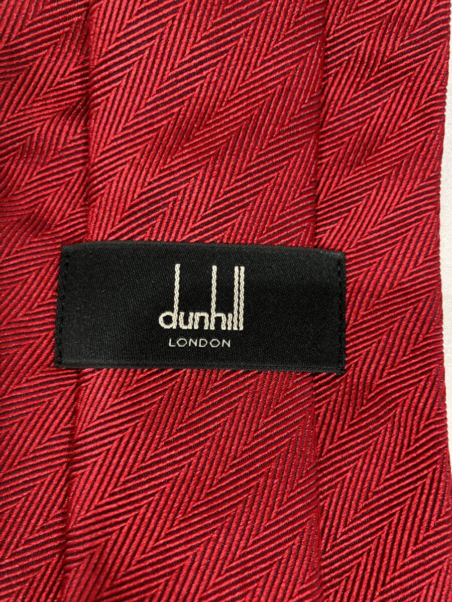 イ9-6 dunhill ダンヒルネクタイ 赤色 杉綾自模様