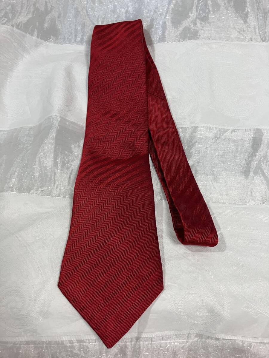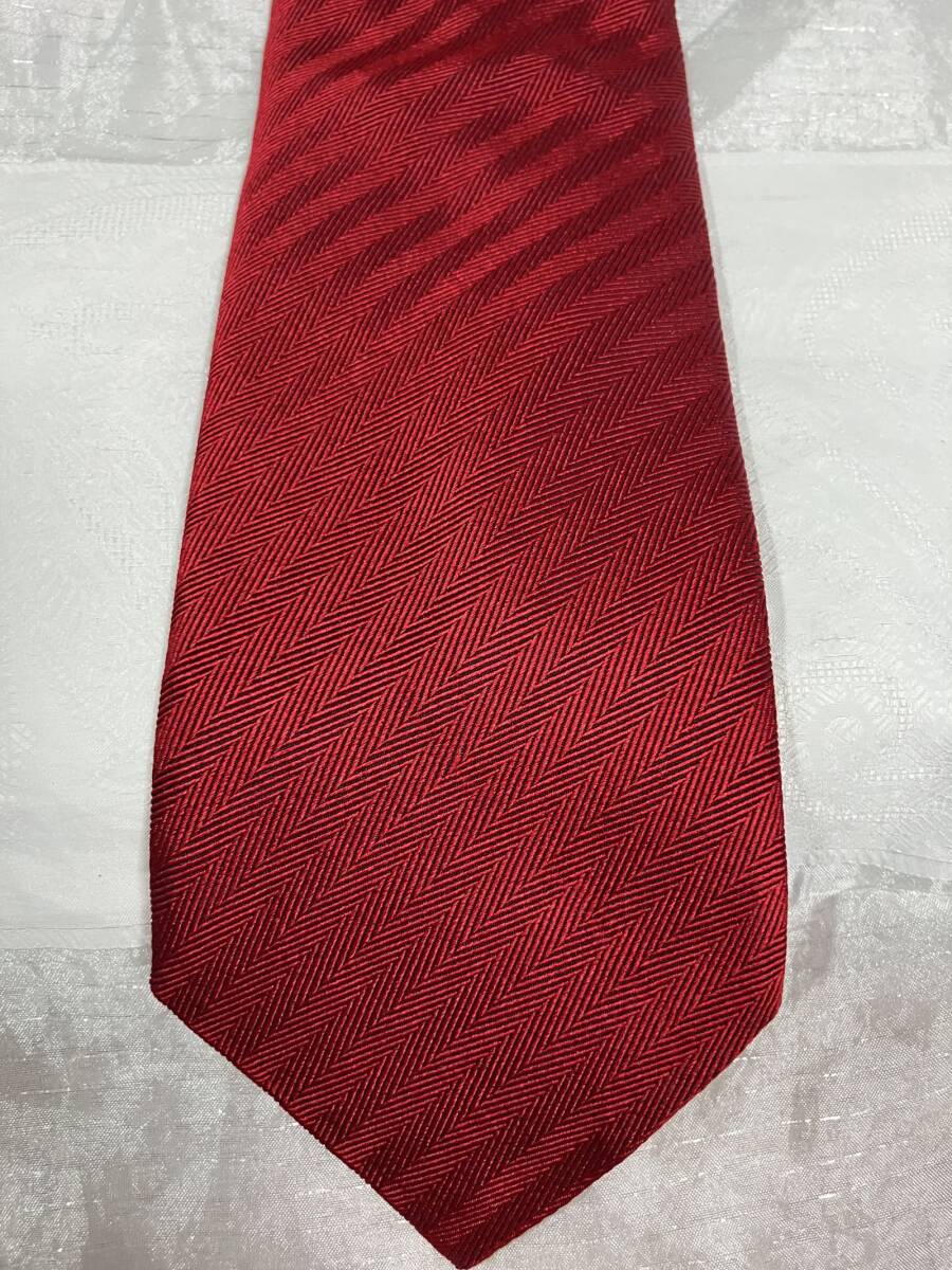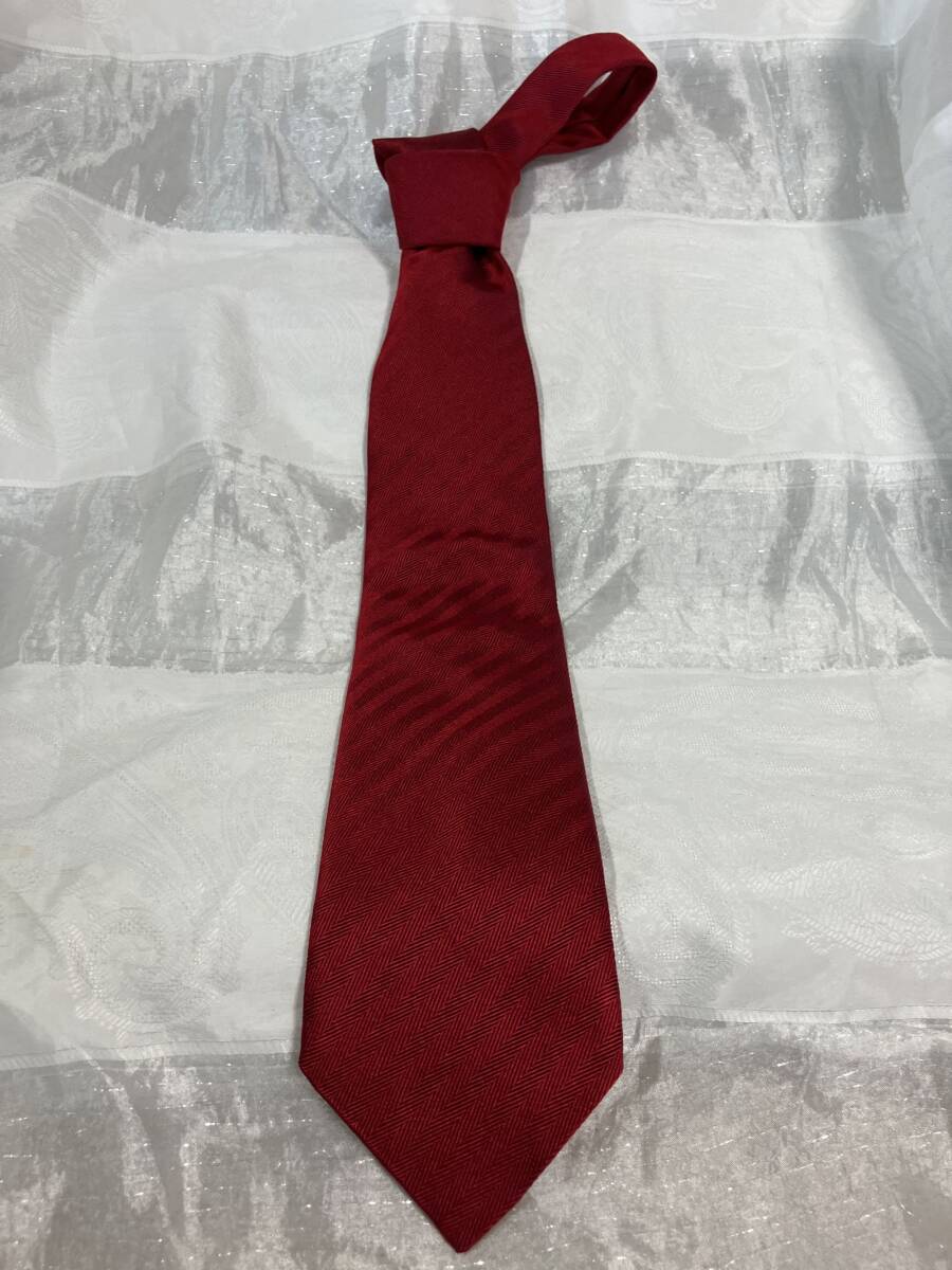 イ9-6 dunhill ダンヒルネクタイ 赤色 杉綾自模様