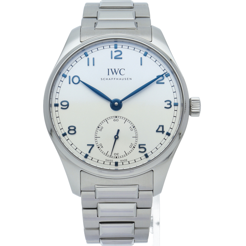 商品説明:1930年代にポルトガル商人がオーダーメイドした時計を原形として製造が開始されたポルトギーゼ。こちらは、自社製ペラトン式ムーブメントCal.82200を搭載、ブレスレット仕様となった2021年発表モデルです。リーフハンドやレイルウェイなどのクラシカルなデザインと、IWCの高い機能を併せ持ったドレスウォッチです。パワーリザーブ約60時間。