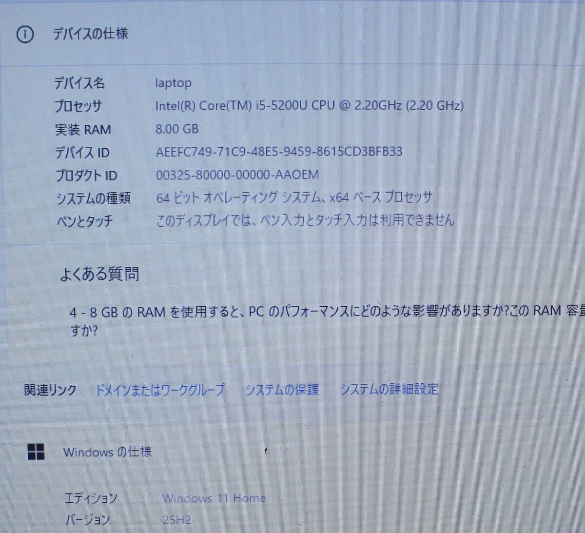 ●Windows 11 最新版(25H2) をインストール済み。  2025年10月公開の最新版です。