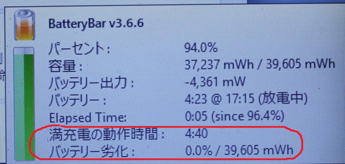 ●バッテリー :良好です。 満充電の動作時間表示は、写真9枚目をご覧ください。