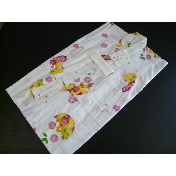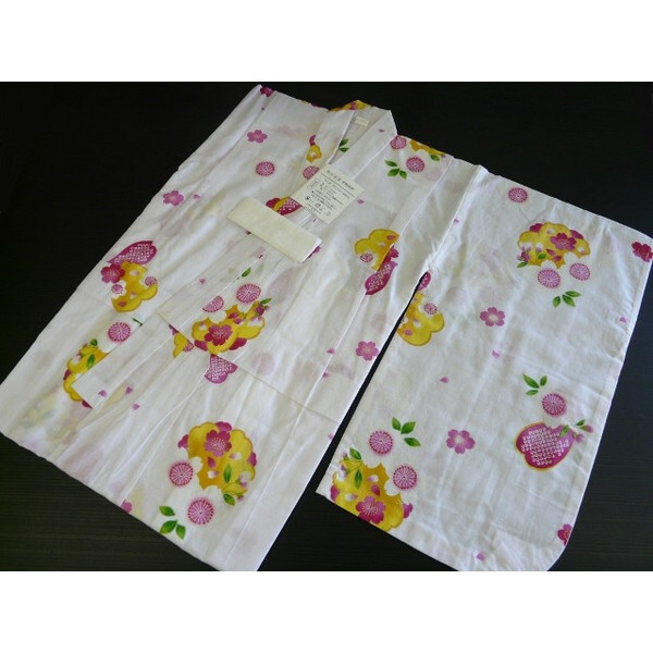 052 新品 子供浴衣 女児 白地 花柄 黄色 110cm