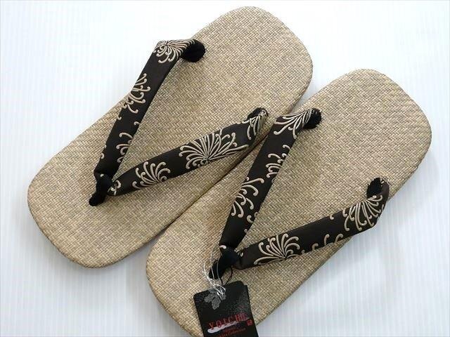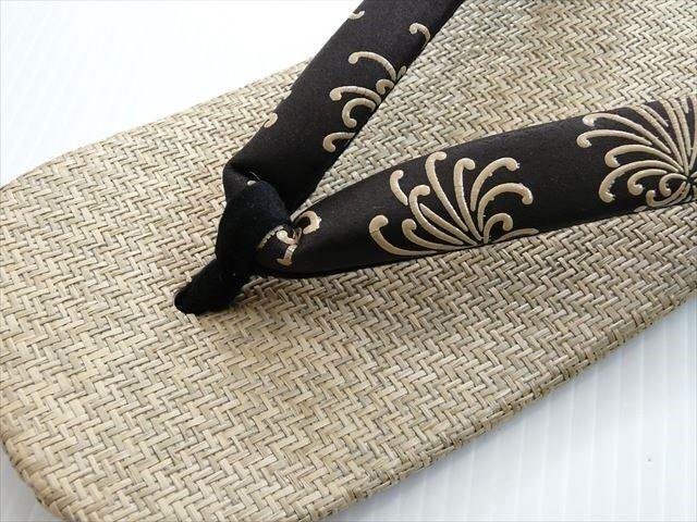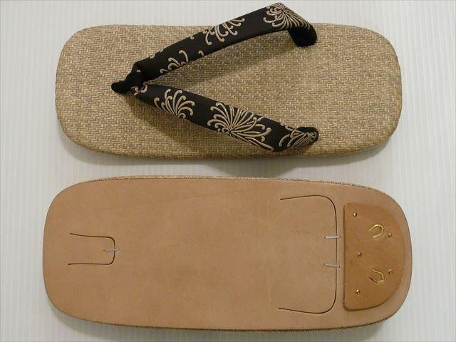 男物 雪駄 Lサイズ 本印伝鼻緒 茶乱菊 037