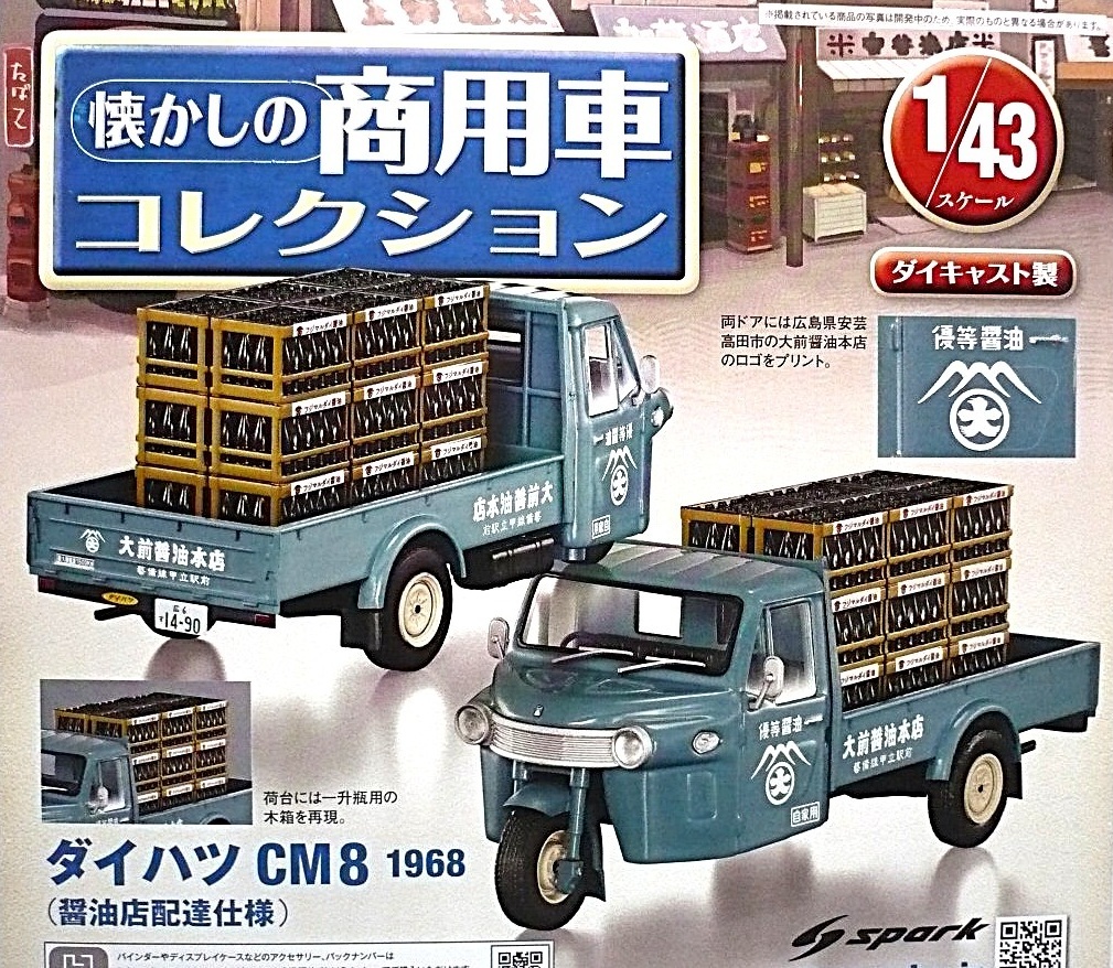 懐かしの商用車コレクション vol.06ダイハツCM8(1968)醤油店配達仕様  1/43スケール ダイキャスト製ミニカー Spark(未使用・保管品)