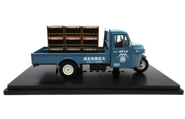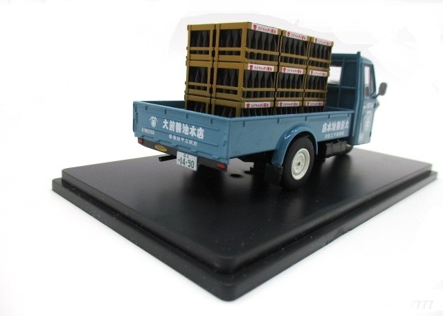 塗装&仕様はオリジナル。荷台には一升瓶用の木箱を再現されたリアルな積荷付き。両ドアには醤油店のロゴがプリントされてます。