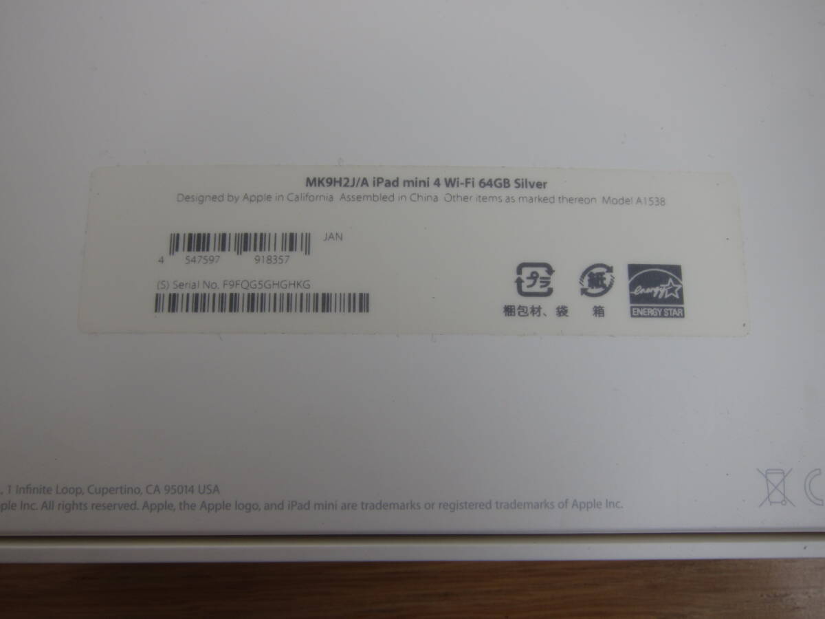 Apple iPad mini 4 64GB シルバー【初期化済】