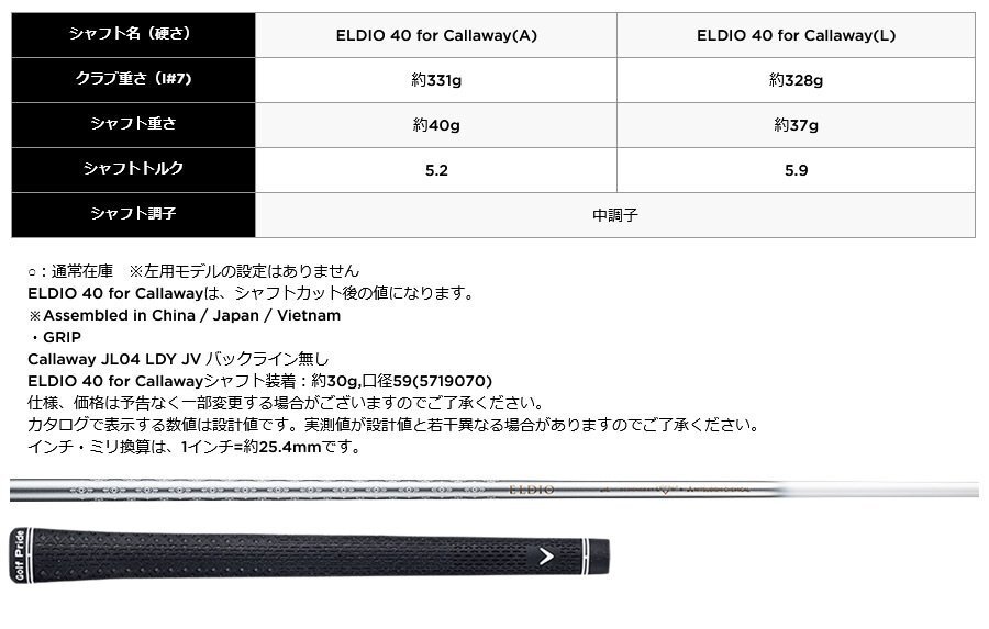 シャフト: ELDIO 40 for Callaway